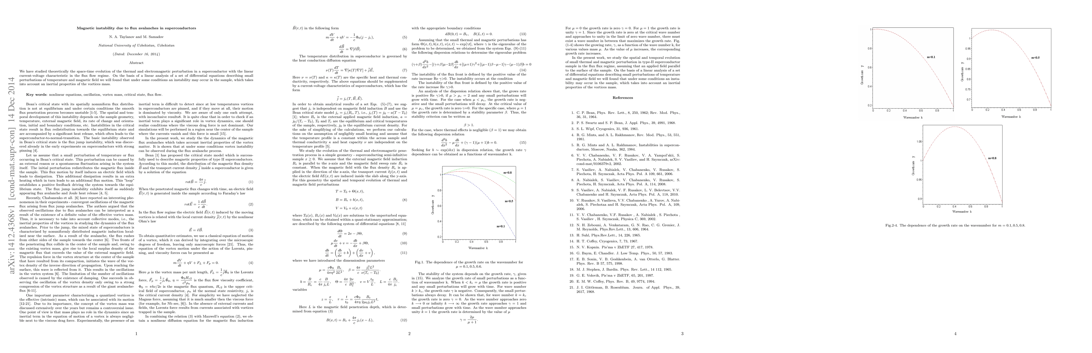 The paper presents a theoretical framework for understanding magnetic instability due to flux avalanches in superconductors, taking into account the inertial properties of vortices.