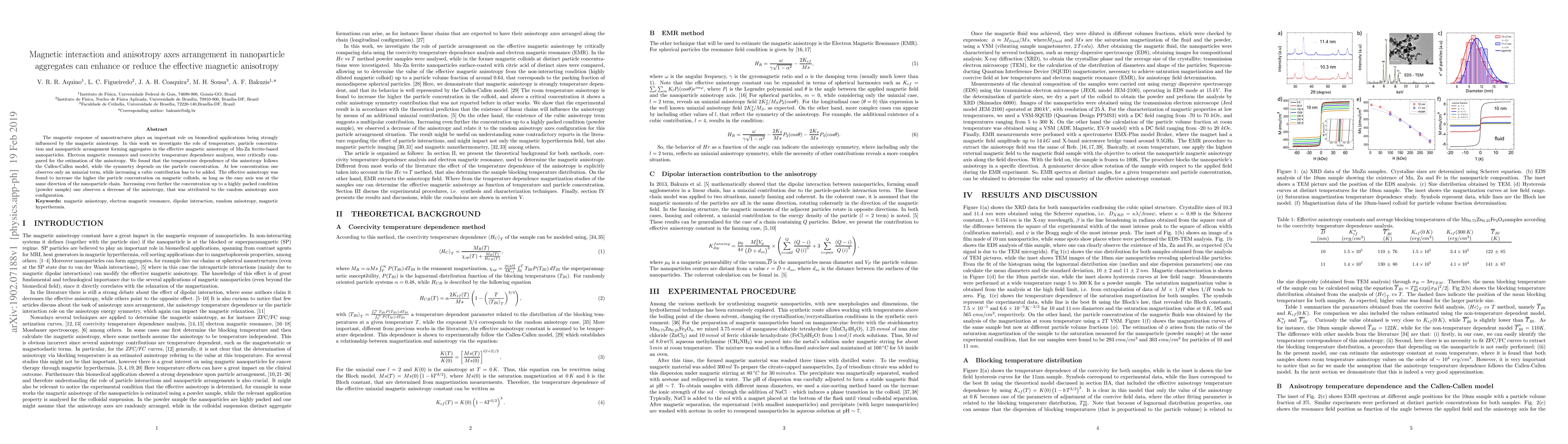 This study investigates how temperature, particle concentration, and nanoparticle arrangement affect the effective magnetic anisotropy in Mn-Zn ferrite-based aggregates. The research found that higher particle concentration enhances anisotropy when aligned, but random configurations at higher concentrations reduce it.