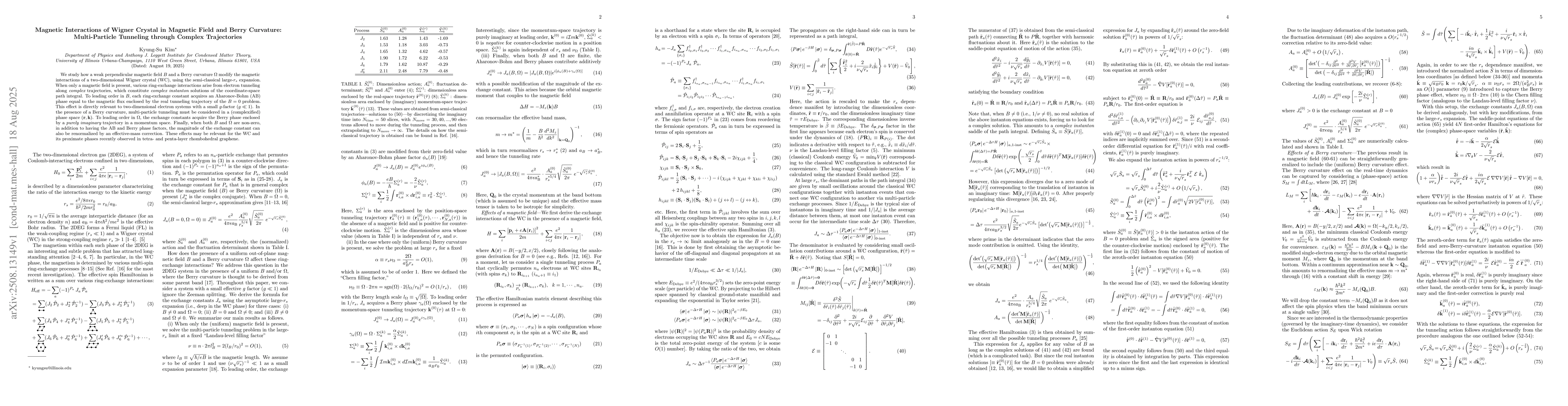 The paper presents a detailed analysis of magnetic interactions in a Wigner crystal under magnetic fields and Berry curvature, extending previous work by considering complex instanton solutions and multi-particle tunneling in phase space.
