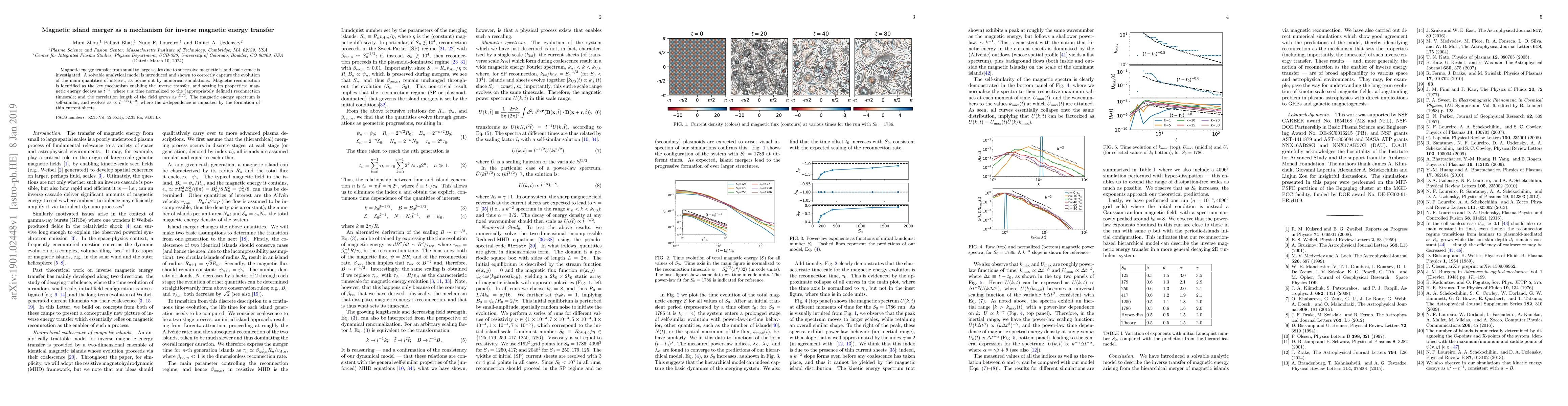 Magnetic energy transfer from small to large scales due to successive magnetic island coalescence is investigated. A solvable analytical model is introduced and shown to correctly capture the evolution of the main quantities of interest, as borne out by numerical simulations. Magnetic reconnection is identified as the key mechanism enabling the inverse transfer, and setting its properties: magnetic energy decays as $\tilde t^{-1}$, where $\tilde t$ is time normalized to the (appropriately defined) reconnection timescale; and the correlation length of the field grows as $\tilde t^{1/2}$. The magnetic energy spectrum is self-similar, and evolves as $\propto \tilde t ^{-3/2}k^{-2}$, where the $k$-dependence is imparted by the formation of thin current sheets.