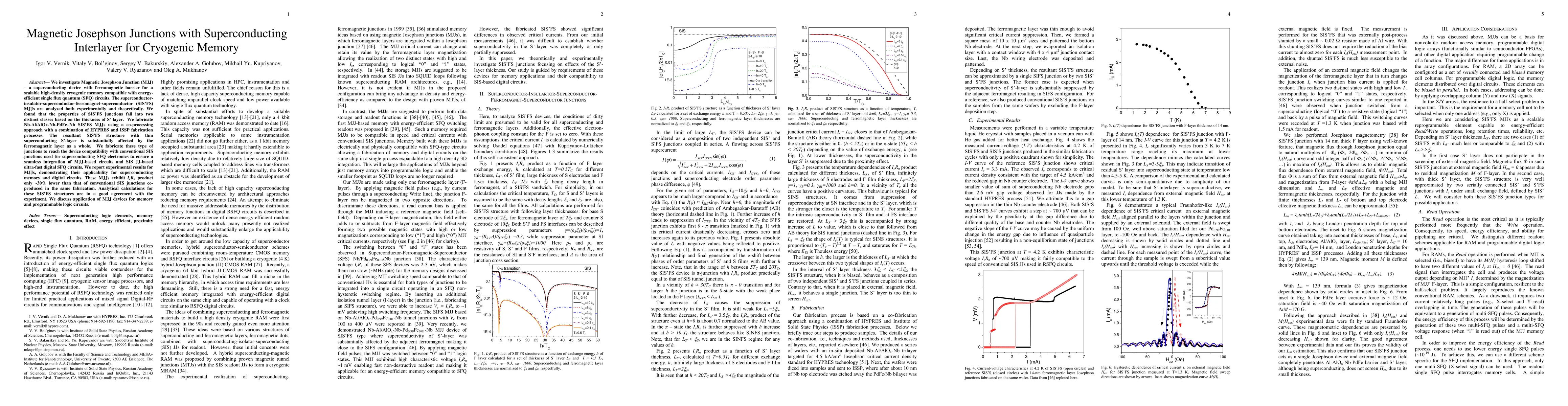 This paper investigates Magnetic Josephson Junctions (MJJs) with a superconducting interlayer for cryogenic memory applications, demonstrating that their properties depend on the thickness of the superconducting layer. The study combines experimental and theoretical analysis, showing that thin superconducting layers significantly affect the junctions' performance, and explores their compatibility with superconducting single flux quantum circuits.