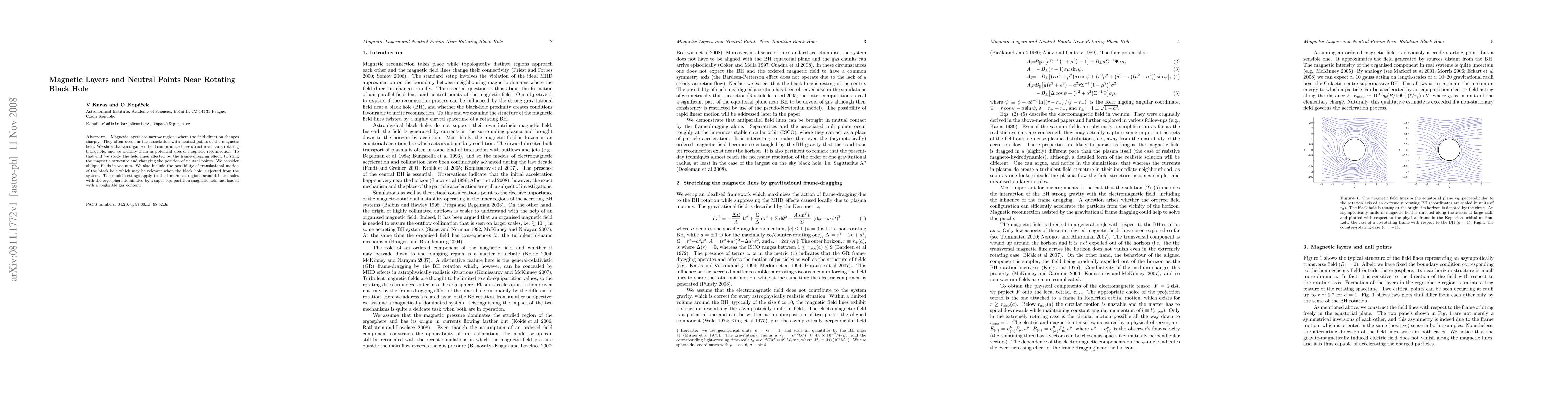 This paper investigates magnetic layers and neutral points near rotating black holes, demonstrating how organized magnetic fields can produce these structures due to frame-dragging effects. These regions are identified as potential sites for magnetic reconnection, with implications for astrophysical phenomena in the ergosphere.