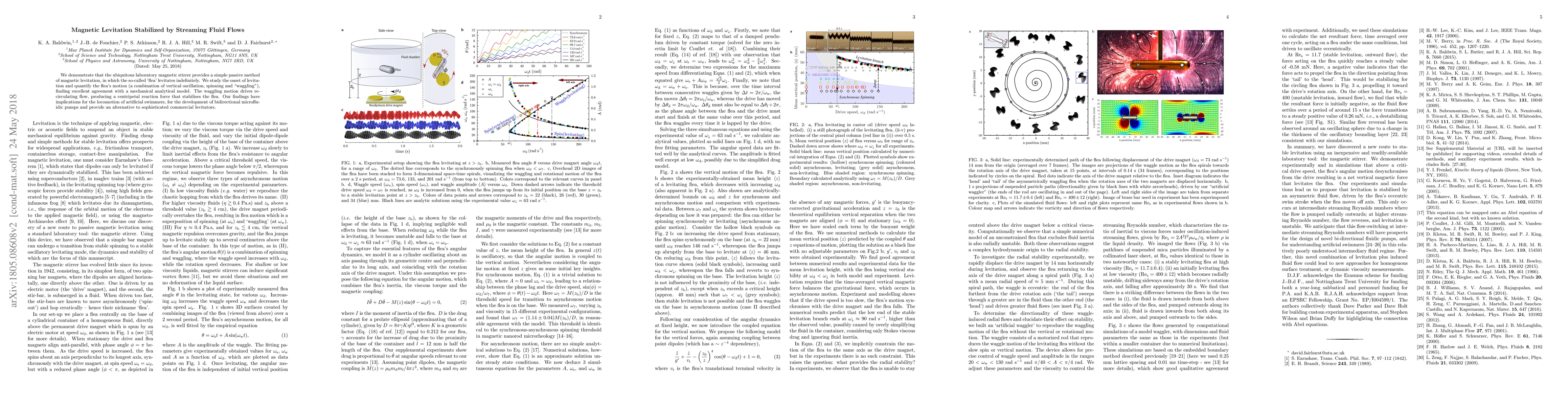 This paper demonstrates a simple passive magnetic levitation method using a laboratory stirrer, where a "flea" object levitates indefinitely due to a centripetal reaction force from recirculating fluid flows. The study aligns flea motion with a mechanical analytical model, suggesting applications for artificial swimmers and microfluidic pumps.