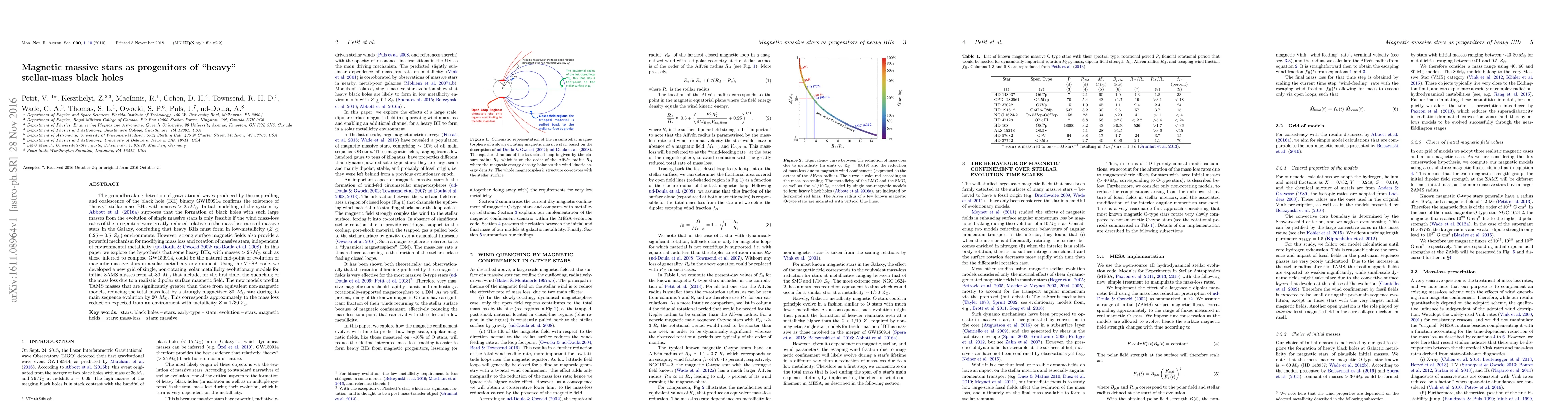 The groundbreaking detection of gravitational waves produced by the inspiralling and coalescence of the black hole (BH) binary GW150914 confirms the existence of "heavy" stellar-mass BHs with masses >25 Msun. Initial modelling of the system by Abbott et al. (2016a) supposes that the formation of black holes with such large masses from the evolution of single massive stars is only feasible if the wind mass-loss rates of the progenitors were greatly reduced relative to the mass-loss rates of massive stars in the Galaxy, concluding that heavy BHs must form in low-metallicity (Z < 0.25-0.5 Zsun) environments. However, strong surface magnetic fields also provide a powerful mechanism for modifying mass loss and rotation of massive stars, independent of environmental metallicity (ud-Doula & Owocki 2002; ud-Doula et al. 2008). In this paper we explore the hypothesis that some heavy BHs, with masses >25 Msun such as those inferred to compose GW150914, could be the natural end-point of evolution of magnetic massive stars in a solar-metallicity environment. Using the MESA code, we developed a new grid of single, non-rotating, solar metallicity evolutionary models for initial ZAMS masses from 40-80 Msun that include, for the first time, the quenching of the mass loss due to a realistic dipolar surface magnetic field. The new models predict TAMS masses that are significantly greater than those from equivalent non-magnetic models, reducing the total mass lost by a strongly magnetized 80 Msun star during its main sequence evolution by 20 Msun. This corresponds approximately to the mass loss reduction expected from an environment with metallicity Z = 1/30 Zsun.