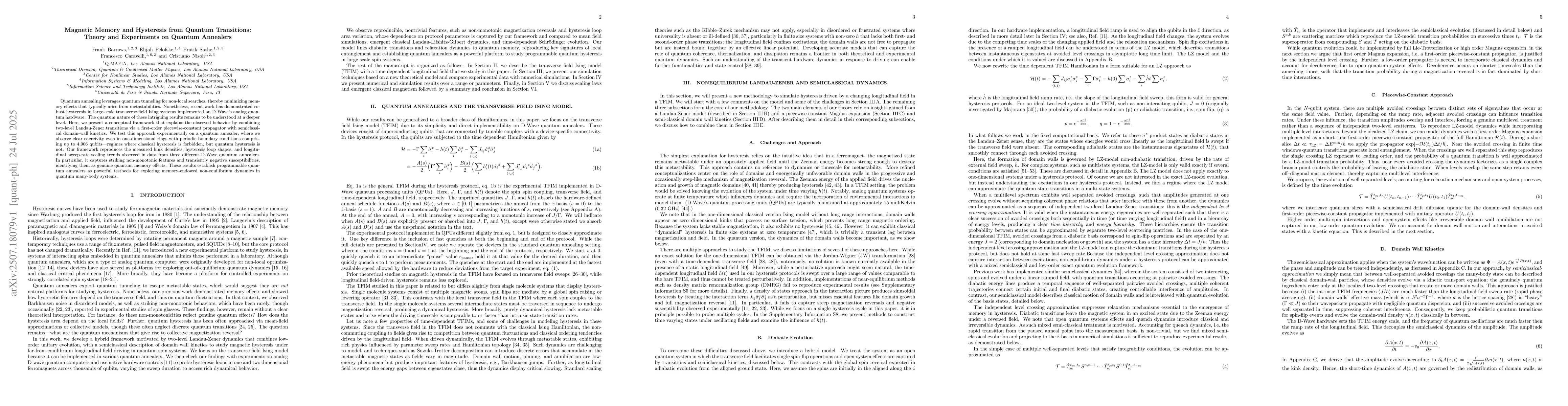 Quantum annealing leverages quantum tunneling for non-local searches, thereby minimizing memory effects that typically arise from metastabilities. Nonetheless, recent work has demonstrated robust hysteresis in large-scale transverse-field Ising systems implemented on D-Wave's analog quantum hardware. The quantum nature of these intriguing results remains to be understood at a deeper level. Here, we present a conceptual framework that explains the observed behavior by combining two-level Landau-Zener transitions via a first-order piecewise-constant propagator with semiclassical domain-wall kinetics. We test this approach experimentally on a quantum annealer, where we observe clear coercivity even in one-dimensional rings with periodic boundary conditions comprising up to 4,906 qubits-regimes where classical hysteresis is forbidden, but quantum hysteresis is not. Our framework reproduces the measured kink densities, hysteresis loop shapes, and longitudinal sweep-rate scaling trends observed in data from three different D-Wave quantum annealers. In particular, it captures striking non-monotonic features and transiently negative susceptibilities, identifying them as genuine quantum memory effects. These results establish programmable quantum annealers as powerful testbeds for exploring memory-endowed non-equilibrium dynamics in quantum many-body systems.