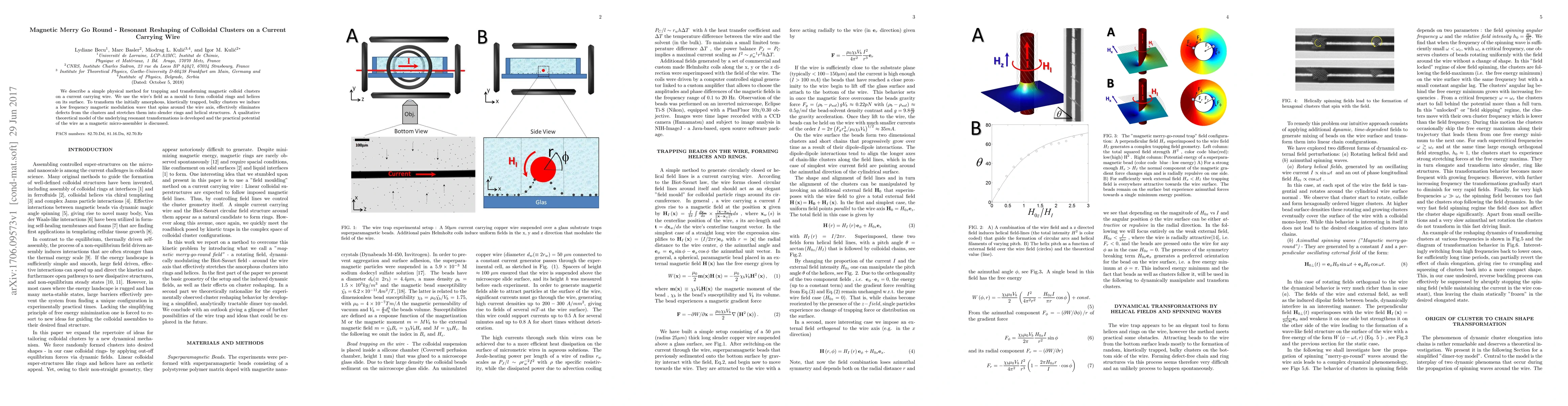 We describe a simple physical method for trapping and transforming magnetic colloid clusters on a current carrying wire. We use the wire's field as a mould to form colloidal rings and helices on its surface. To transform the initially amorphous, kinetically trapped, bulky clusters we induce a low frequency magnetic modulation wave that spins around the wire axis, effectively eliminates defects from the clusters and stretches them into slender rings and helical structures. A qualitative theoretical model of the underlying resonant transformations is developed and the practical potential of the wire as a magnetic micro-assembler is discussed.
