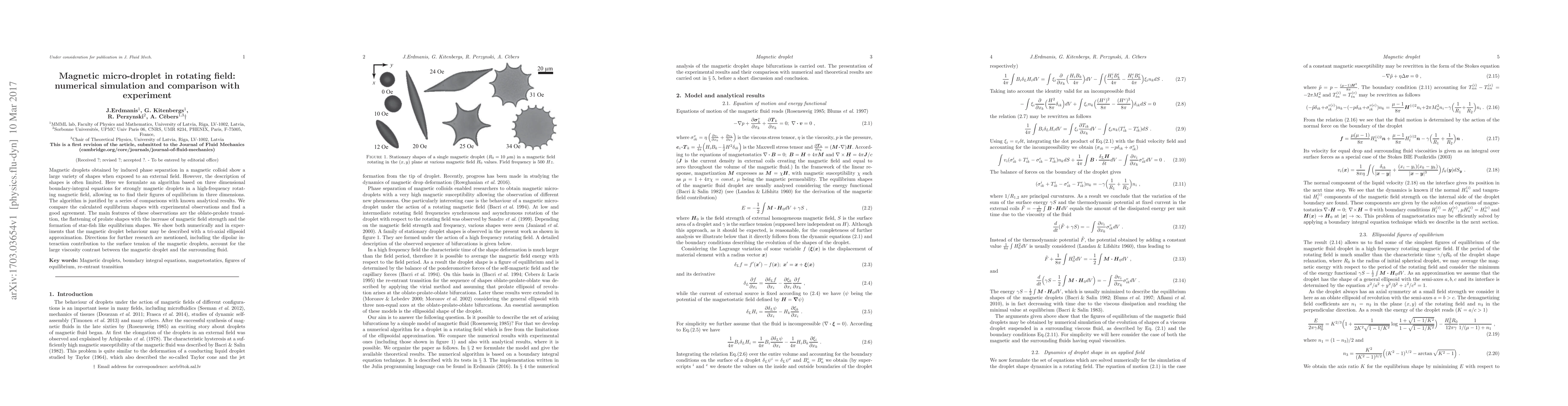 This paper develops a numerical algorithm based on boundary-integral equations to simulate the shapes of magnetic micro-droplets under a high-frequency rotating magnetic field, comparing results with experimental observations and finding good agreement. The study highlights the oblate-prolate transition and star-fish shapes, suggesting a tri-axial ellipsoid model for magnetic droplet behavior.