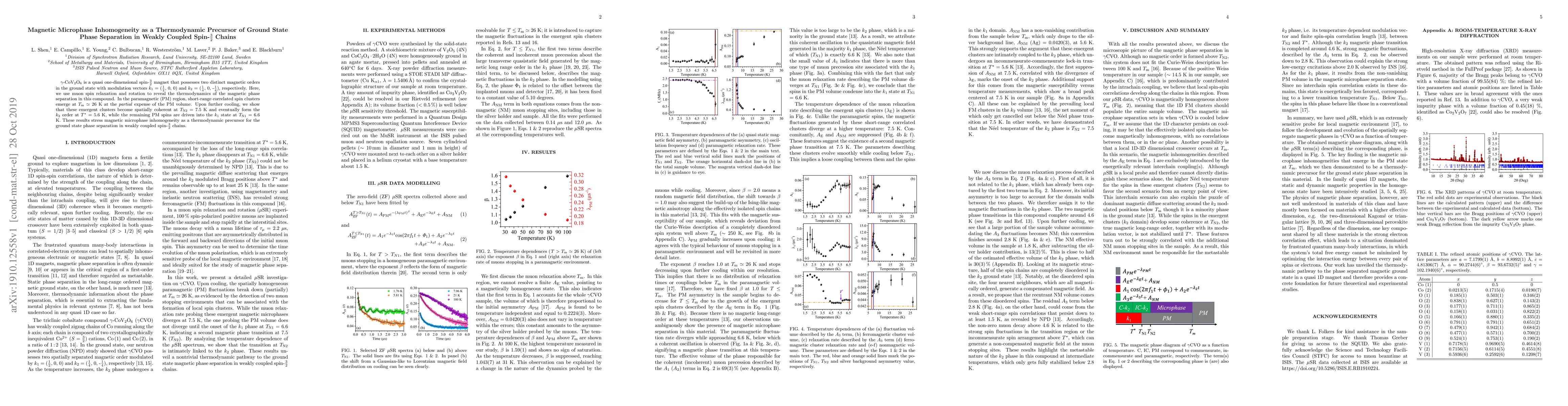 $\gamma$-CoV$_{2}$O$_{6}$ is a quasi one-dimensional spin-$\frac{3}{2}$ magnet that possesses two distinct magnetic orders in the ground state with modulation vectors $k_\mathrm{1}$ = ($\frac{1}{2}$, 0, 0) and $k_\mathrm{2}$ = ($\frac{1}{4}$, 0, -$\frac{1}{4}$), respectively. Here, we use muon spin relaxation and rotation to reveal the thermodynamics of the magnetic phase separation in this compound. In the paramagnetic (PM) region, short-range correlated spin clusters emerge at $T_\mathrm{m}$ $\simeq$ 26 K at the $\it{partial}$ expense of the PM volume. Upon further cooling, we show that these emergent clusters become spatially coherent at $T_\mathrm{{N2}}$ = 7.5 K and eventually form the $k_\mathrm{2}$ order at $T^{\star}$ = 5.6 K, while the remaining PM spins are driven into the $k_\mathrm{1}$ state at $T_\mathrm{{N1}}$ = 6.6 K. These results stress magnetic microphase inhomogeneity as a thermodynamic precursor for the ground state phase separation in weakly coupled spin-$\frac{3}{2}$ chains.