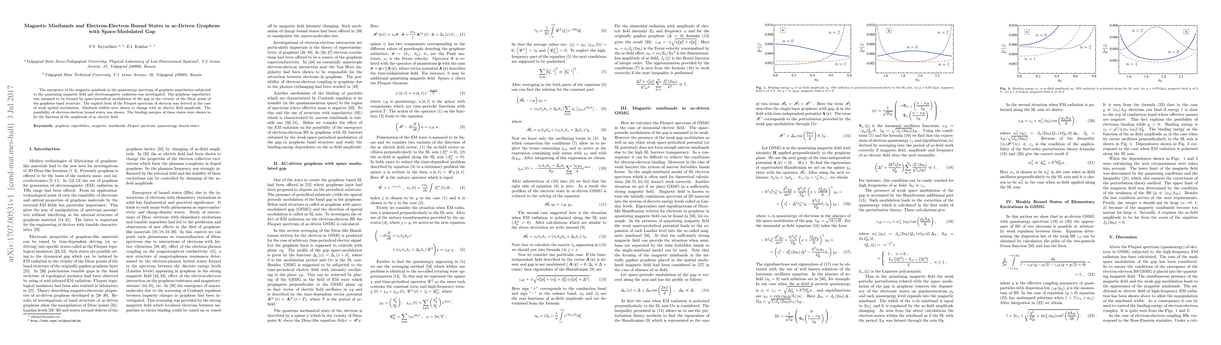 The emergence of the magnetic minibads in the quasienergy spectrum of graphene superlattice subjected to the quantizing magnetic field and electromagnetic radiation was investigated. The graphene superlattice was assumed to be formed by space-periodical modulation of the gap in the vicinity of the Dirac point of the graphene band structure. The explicit form of the Floquet spectrum of electron was derived in the case of weak spatial modulation. Minibads widths were shown to change with ac electric field amplitude. The possibility of electron-electron bound states was shown. The binding energies of these states were shown to be the function of the amplitude of ac electric field.