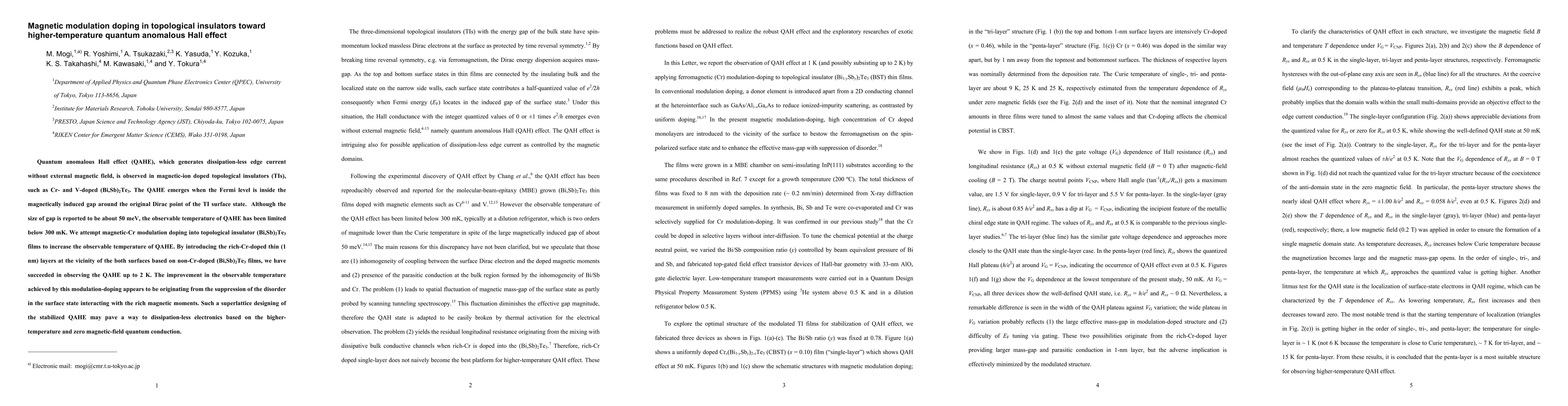 This paper investigates magnetic modulation doping in topological insulators to enhance the temperature range of the quantum anomalous Hall effect (QAHE). By introducing thin Cr-doped layers, the authors observe QAHE up to 2 K, significantly higher than previous limits, attributing the improvement to the suppression of surface state disorder.