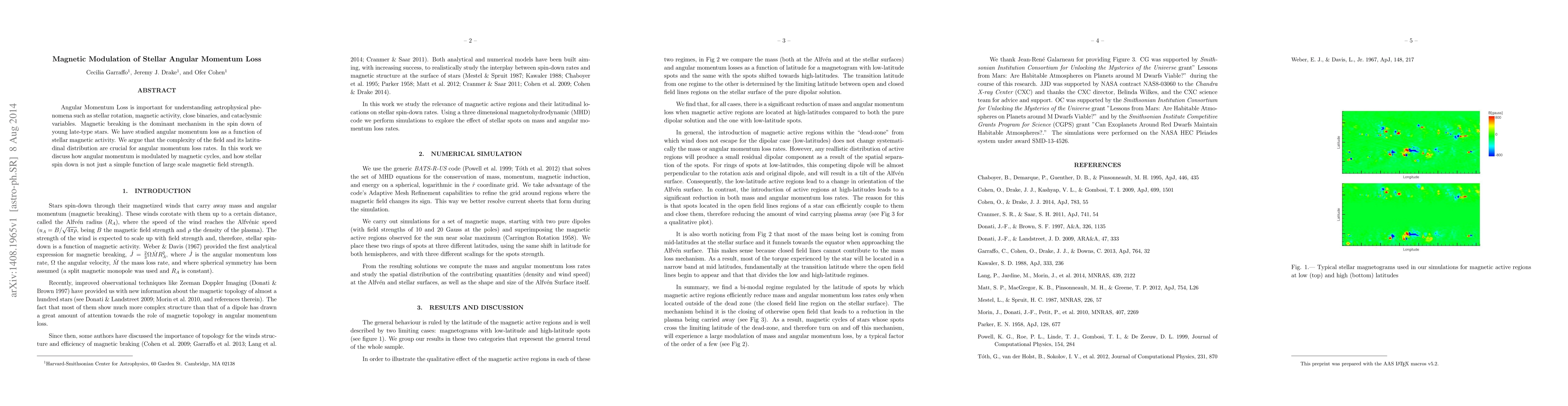 This paper investigates how stellar angular momentum loss is modulated by magnetic activity, emphasizing the role of magnetic cycles and the latitudinal distribution of magnetic fields in influencing spin down rates, beyond just large-scale magnetic field strength.