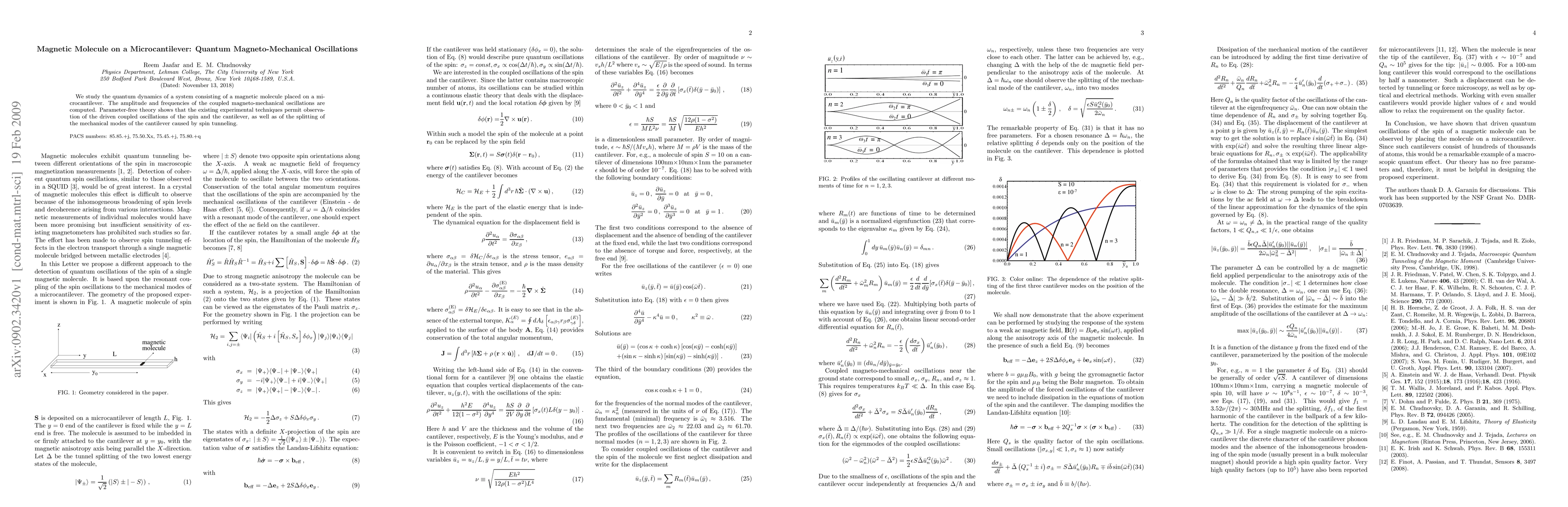 Quantum tunneling of magnetic moments is studied using a microcantilever with a magnetic molecule attached.
