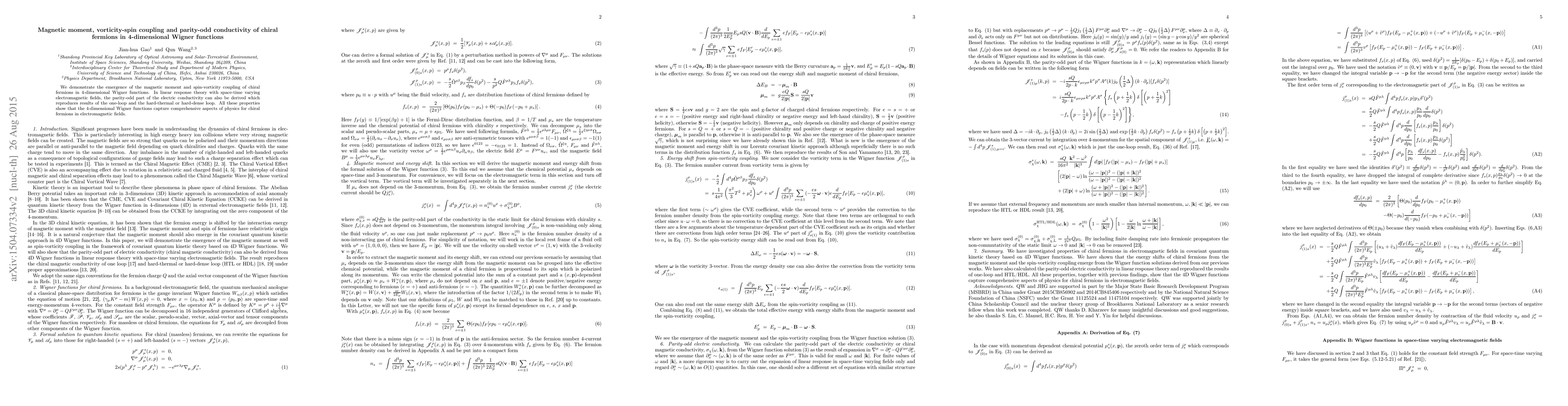 Researchers demonstrate that 4-dimensional Wigner functions can capture magnetic moment and spin-vorticity coupling of chiral fermions in electromagnetic fields, reproducing results from linear response theory and hard-thermal loop calculations.