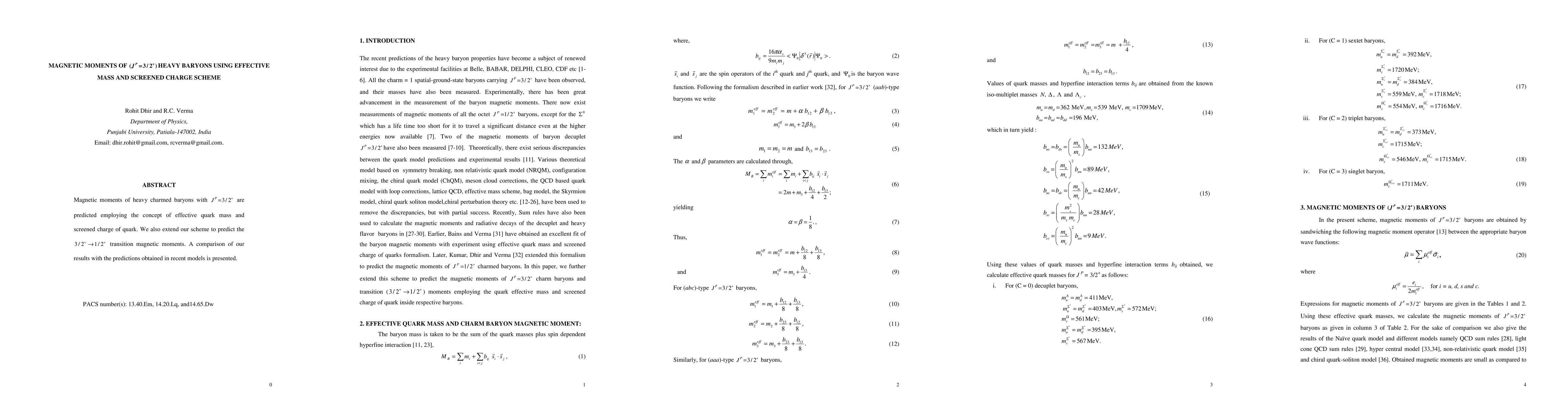 Magnetic moments of heavy charmed baryons with $J^P=3/2^+$ are predicted employing the concept of effective quark mass and screened charge of quark. We also extend our scheme to predict the $3/2^+ --> 1/2^+$ transition magnetic moments. A comparison of our results with the predictions obtained in recent models is presented.