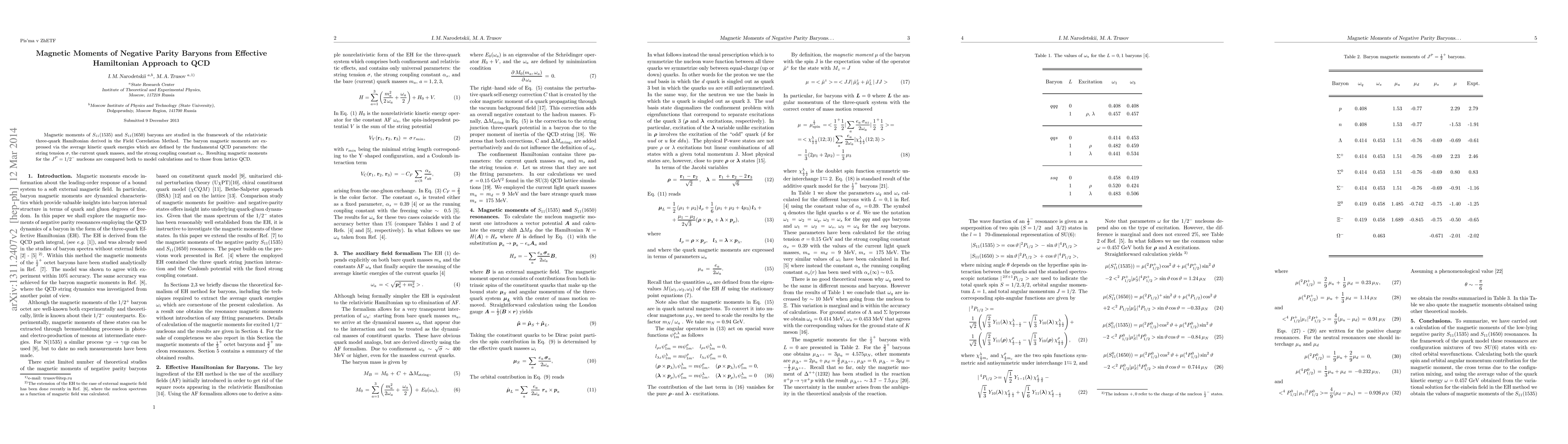 Magnetic moments of $S_{11}(1535)$ and $S_{11}(1650)$ baryons are studied in the framework of the relativistic three-quark Hamiltonian derived in the Field Correlation Method. The baryon magnetic moments are expressed via the average current quark energies which are defined by the fundamental QCD parameters: the string tension $\sigma$, the quark masses, and the strong coupling constant $\alpha_s$. For the $J^P=1/2^+$ baryon octet the approach was shown to give a good first approximation to the experimental moments. Resulting magnetic moments for the $J^P=1/2^-$ nucleons are compared both to model calculations and to those from lattice QCD.