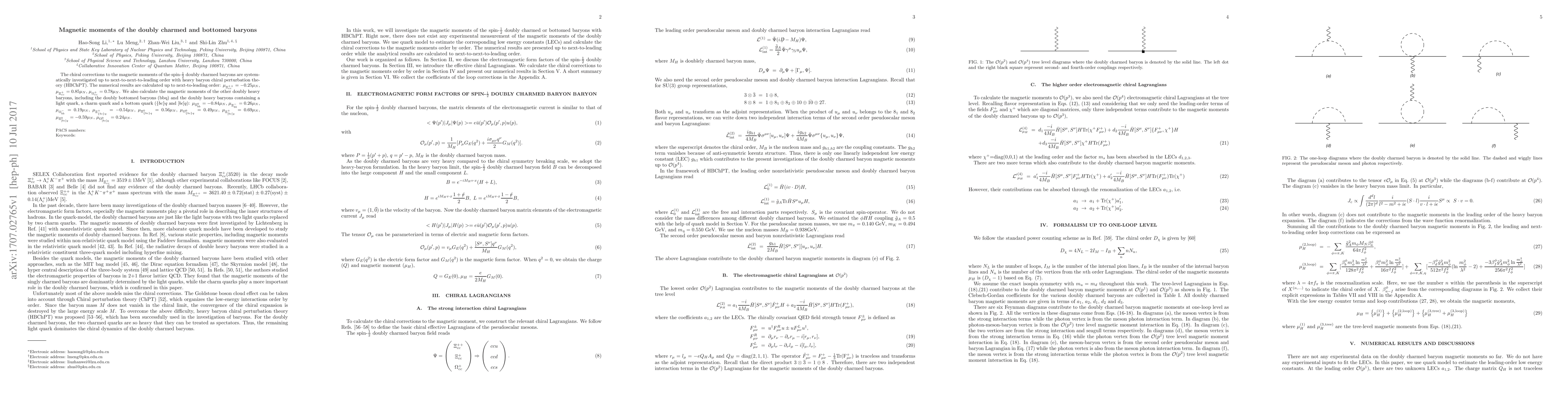 The chiral corrections to the magnetic moments of the spin-$\frac{1}{2}$ doubly charmed baryons are systematically investigated up to next-to-next-to-leading order with heavy baryon chiral perturbation theory (HBChPT). The numerical results are calculated up to next-to-leading order: $\mu_{\Xi^{++}_{cc}}=-0.25\mu_{N}$, $\mu_{\Xi^{+}_{cc}}=0.85\mu_{N}$, $\mu_{\Omega^{+}_{cc}}=0.78\mu_{N}$. We also calculate the magnetic moments of the other doubly heavy baryons, including the doubly bottomed baryons (bbq) and the doubly heavy baryons containing a light quark, a charm quark and a bottom quark ($\{bc\}q$ and $[bc]q$): $\mu_{\Xi^{0}_{bb}}=-0.84\mu_{N}$, $\mu_{\Xi^{-}_{bb}}=0.26\mu_{N}$, $\mu_{\Omega^{-}_{bb}}=0.19\mu_{N}$, $\mu_{\Xi^{+}_{\{bc\}q}}=-0.54\mu_{N}$, $\mu_{\Xi^{0}_{\{bc\}q}}=0.56\mu_{N}$, $\mu_{\Omega^{0}_{\{bc\}q}}=0.49\mu_{N}$, $\mu_{\Xi^{+}_{[bc]q}}=0.69\mu_{N}$, $\mu_{\Xi^{0}_{[bc]q}}=-0.59\mu_{N}$, $\mu_{\Omega^{0}_{[bc]q}}=0.24\mu_{N}$.