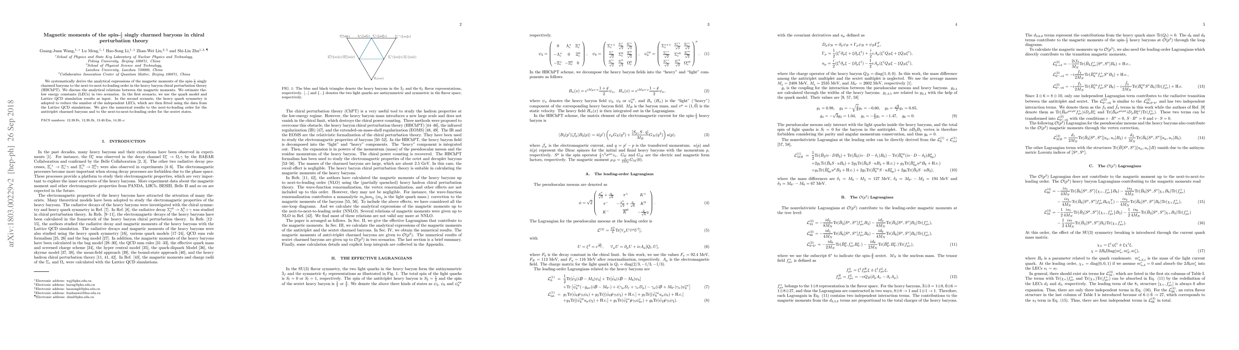 We systematically derive the analytical expressions of the magnetic moments of the spin-$1\over 2$ singly charmed baryons to the next-to-next-to-leading order in the heavy baryon chiral perturbation theory (HBChPT). We discuss the analytical relations between the magnetic moments. We estimate the-low energy constants (LECs) in two scenarios. In the first scenario, we use the quark model and Lattice QCD simulation results as input. In the second scenario, the heavy quark symmetry is adopted to reduce the number of the independent LECs, which are then fitted using the data from the Lattice QCD simulations. We give the numerical results to the next-to-leading order for the antitriplet charmed baryons and to the next-to-next-to-leading order for the sextet states.
