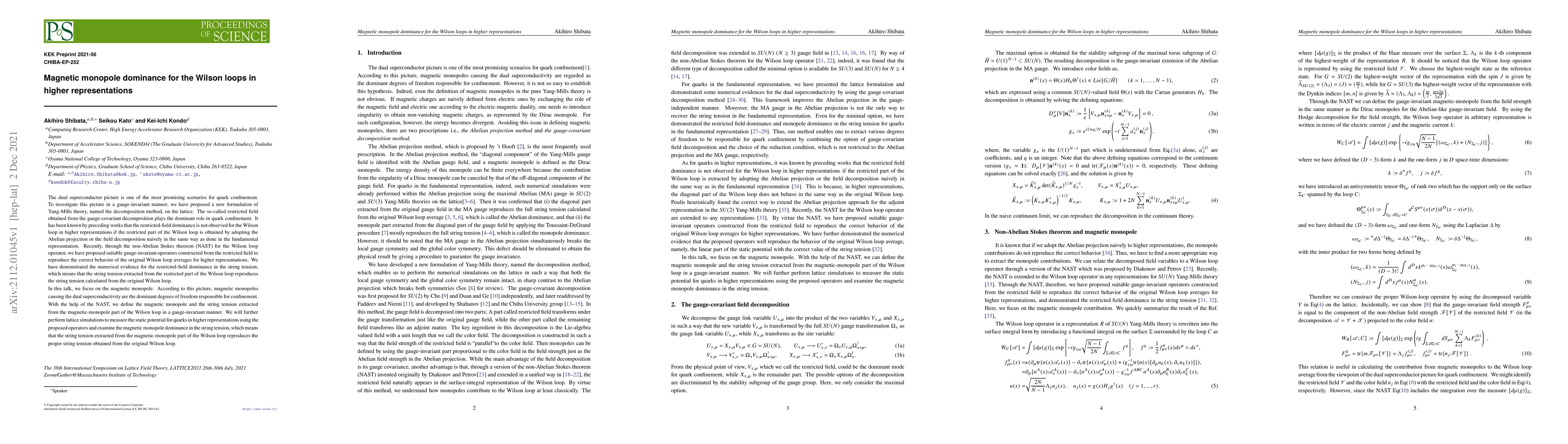 This paper proposes a new formulation of Yang-Mills theory on the lattice to investigate the dual superconductor picture of quark confinement, focusing on the role of magnetic monopoles. Using the non-Abelian Stokes theorem, it defines suitable gauge-invariant operators to demonstrate magnetic monopole dominance in the string tension for higher representations, providing numerical evidence of this dominance through lattice simulations.