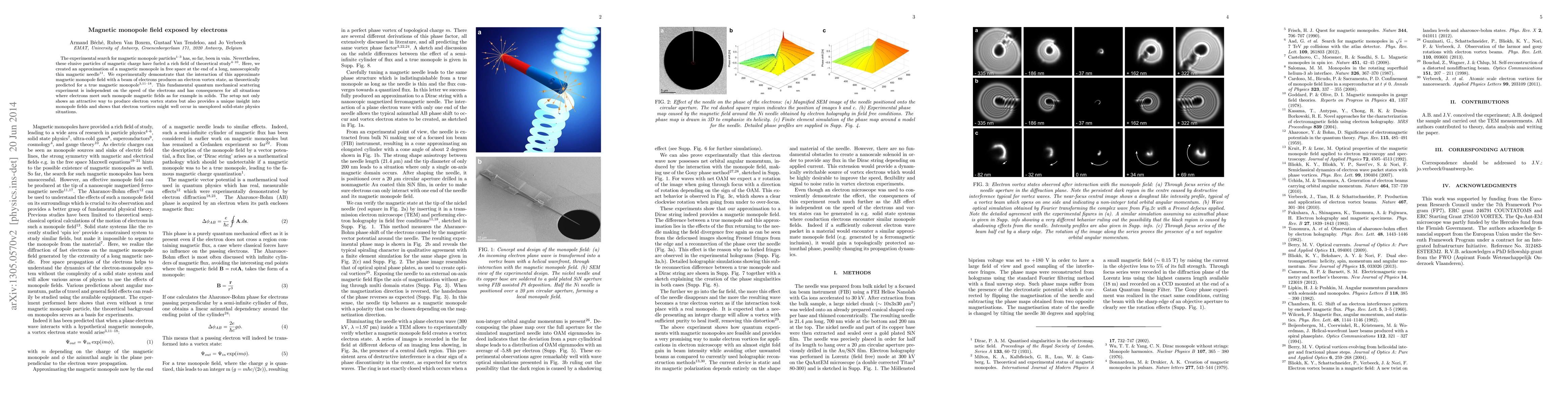 This paper demonstrates the diffraction of fast electrons by a magnetic monopole field generated by a nanoscopic magnetized ferromagnetic needle, using the Aharonov-Bohm effect to produce an effective monopole field. The experiment provides insights into the dynamics of electron-monopole interactions, offering a simpler system than solid-state materials and aiding in the detection of magnetic monopoles in various physical contexts.