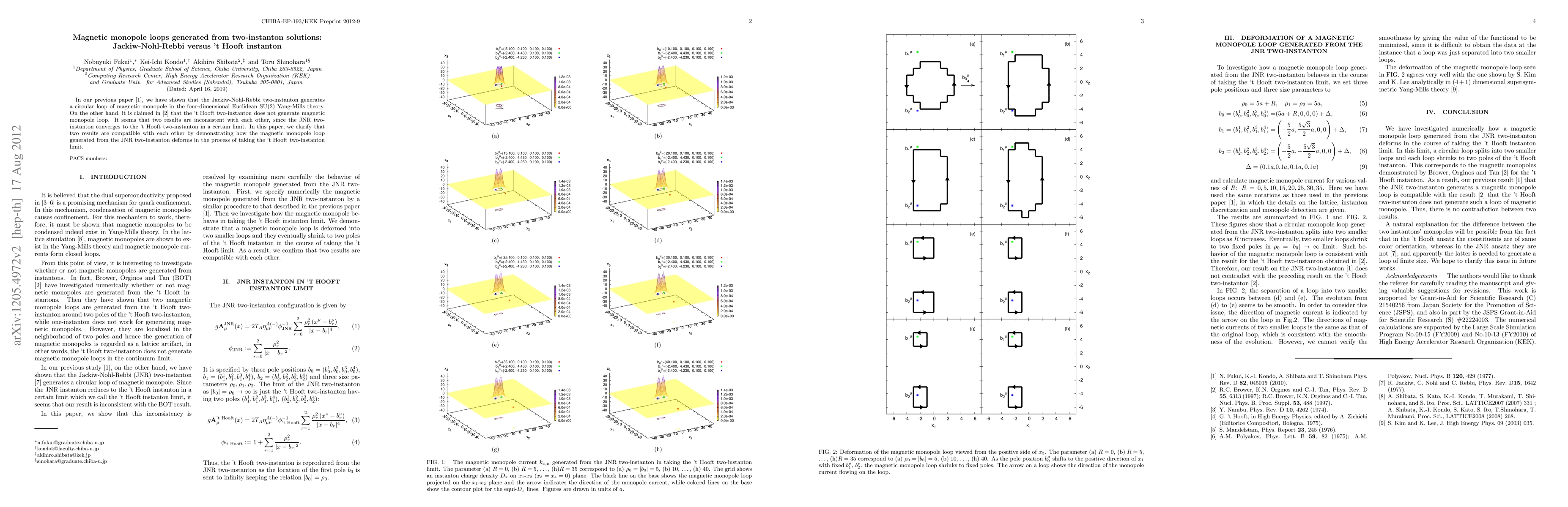 This paper investigates the generation of magnetic monopole loops from two-instanton solutions in four-dimensional Euclidean SU(2) Yang-Mills theory, comparing the Jackiw-Nohl-Rebbi (JNR) and 't Hooft instantons. It resolves the apparent inconsistency between previous claims about the two models by showing how the monopole loop from the JNR instanton deforms when transitioning to the 't Hooft instanton limit.
