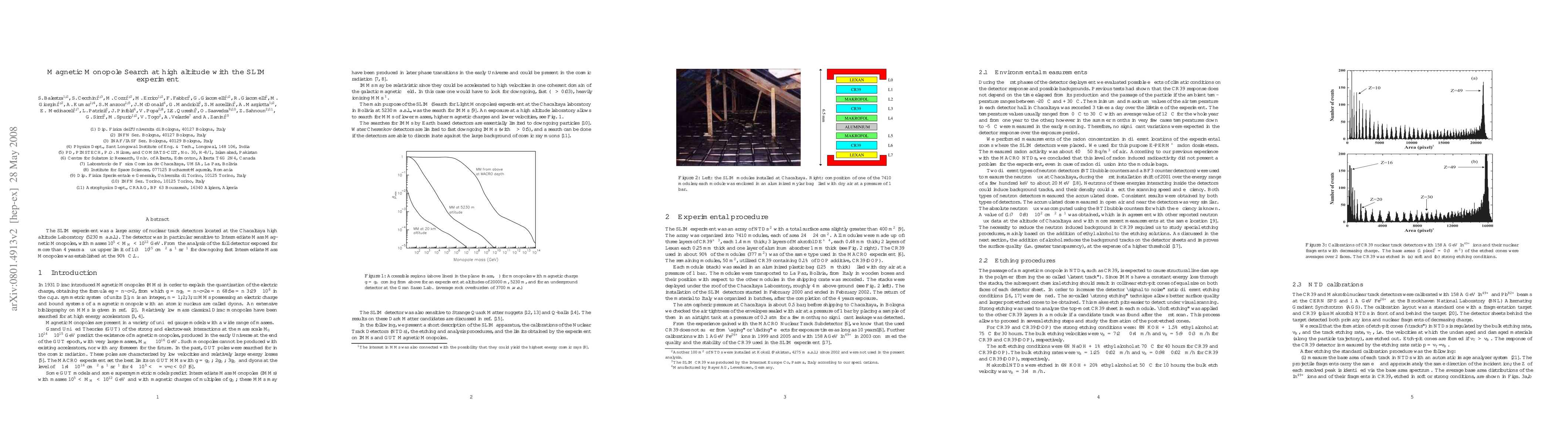 The SLIM experiment was a large array of nuclear track detectors located at the Chacaltaya high altitude Laboratory (5230 m a.s.l.). The detector was in particular sensitive to Intermediate Mass Magnetic Monopoles, with masses 10^5 < M <10^{12} GeV. From the analysis of the full detector exposed for more than 4 years a flux upper limit of 1.3 x 10^{-15} cm^{-2} s^{-1} sr^{-1} for downgoing fast Intermediate Mass Monopoles was established at the 90% C.L.