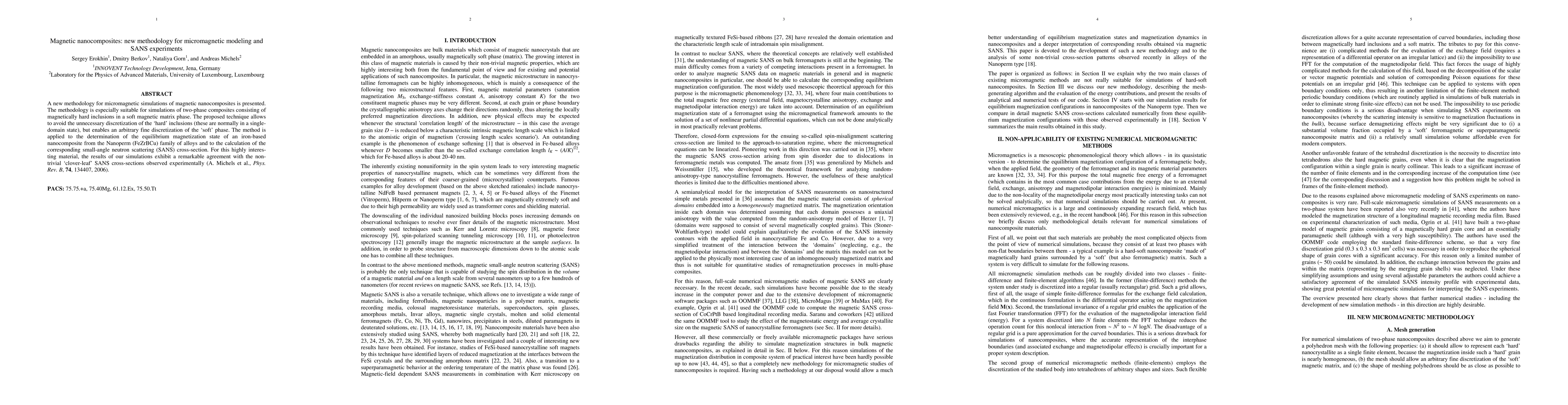 This paper introduces a new micromagnetic simulation methodology for magnetic nanocomposites, particularly for two-phase composites with magnetically hard inclusions in a soft matrix. The technique avoids unnecessary discretization of hard inclusions, focusing on finer discretization of the soft phase, and is validated through simulations of an iron-based Nanoperm alloy, showing good agreement with experimental SANS data.