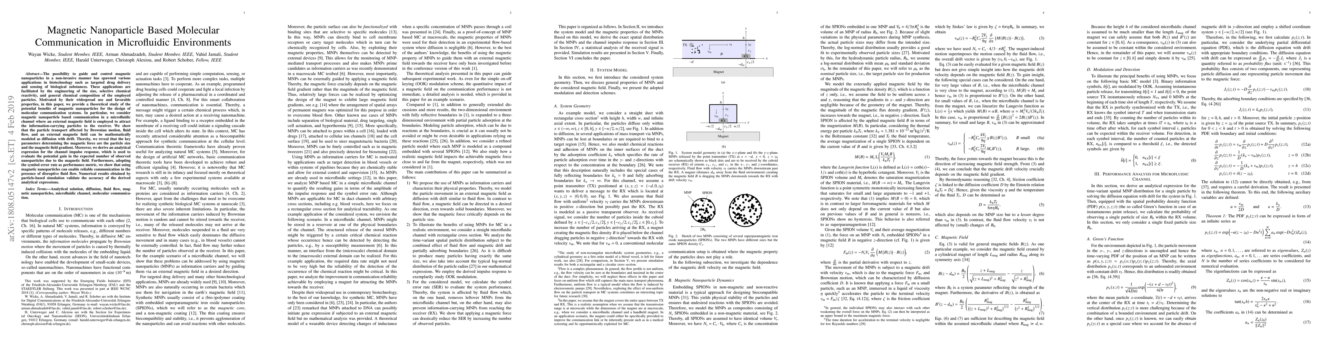 The possibility to guide and control magnetic nanoparticles in a non-invasive manner has spawned various applications in biotechnology such as targeted drug delivery and sensing of biological substances. These applications are facilitated by the engineering of the size, selective chemical reactivity, and general chemical composition of the employed particles. Motivated by their widespread use and favorable properties, in this paper, we provide a theoretical study of the potential benefits of magnetic nanoparticles for the design of molecular communication systems. In particular, we consider magnetic nanoparticle based communication in a microfluidic channel where an external magnetic field is employed to attract the information-carrying particles to the receiver. We show that the particle transport affected by Brownian motion, fluid flow, and an external magnetic field can be mathematically modeled as diffusion with drift. Thereby, we reveal that the key parameters determining the magnetic force are the particle size and the magnetic field gradient. Moreover, we derive an analytical expression for the channel impulse response, which is used to evaluate the potential gain in the expected number of observed nanoparticles due to the magnetic field. Furthermore, adopting the symbol error rate as performance metric, we show that using magnetic nanoparticles can enable reliable communication in the presence of disruptive fluid flow. Numerical results obtained by particle-based simulation validate the accuracy of the derived analytical expressions.