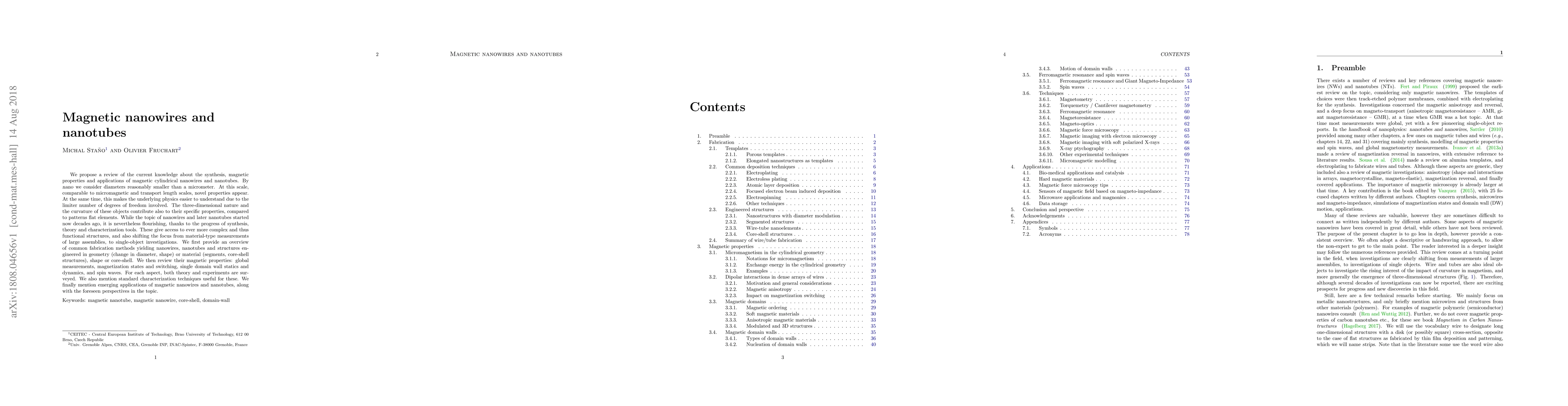 This paper reviews the synthesis, magnetic properties, and applications of magnetic nanowires and nanotubes, highlighting novel properties arising from their three-dimensional nature and curvature. It covers fabrication methods, magnetic behaviors, and characterization techniques, and discusses emerging applications and future perspectives.