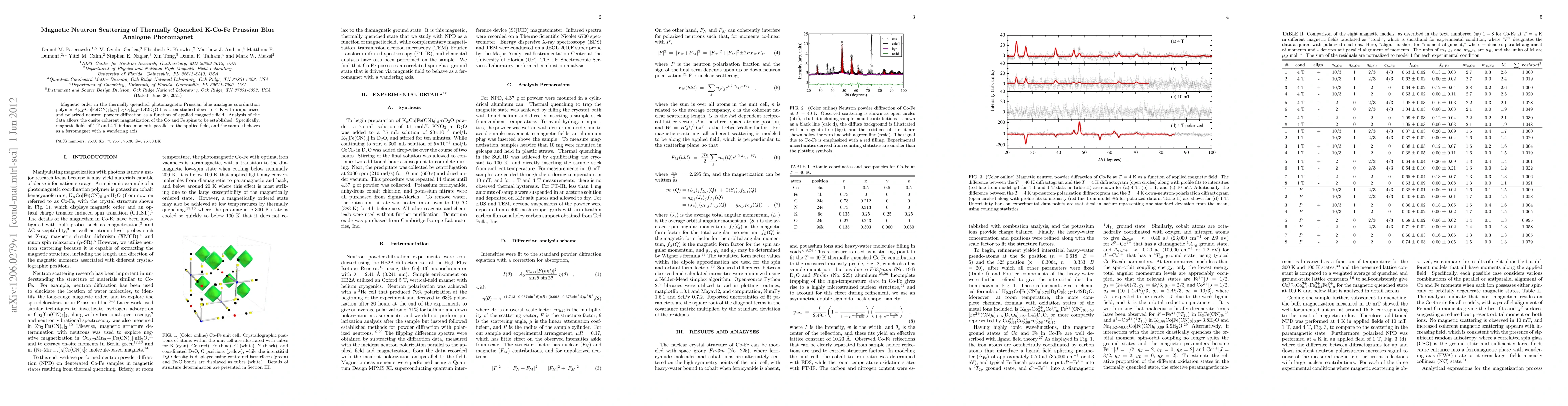 This study investigates the magnetic order in a thermally quenched Prussian blue analogue using neutron scattering, revealing that applied magnetic fields of 1 T and 4 T induce parallel moments, leading to ferromagnetic behavior with a wandering axis. The research establishes the coherent magnetization of Co and Fe spins in the material.