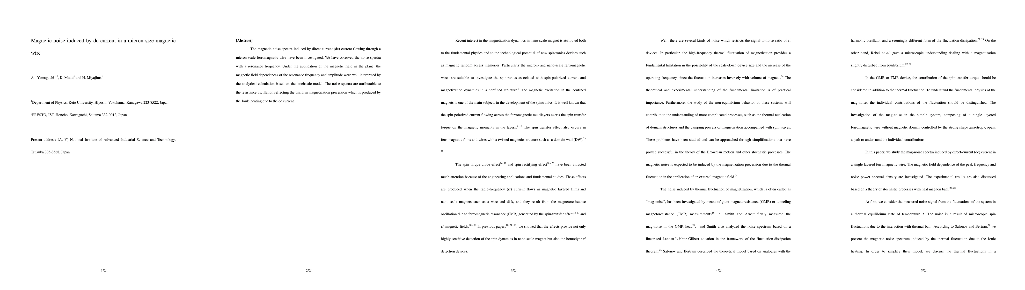 Researchers investigated magnetic noise in a micron-scale wire driven by DC current, finding it caused by resistance oscillation due to Joule heating. Their findings were supported by analytical calculations based on a stochastic model.