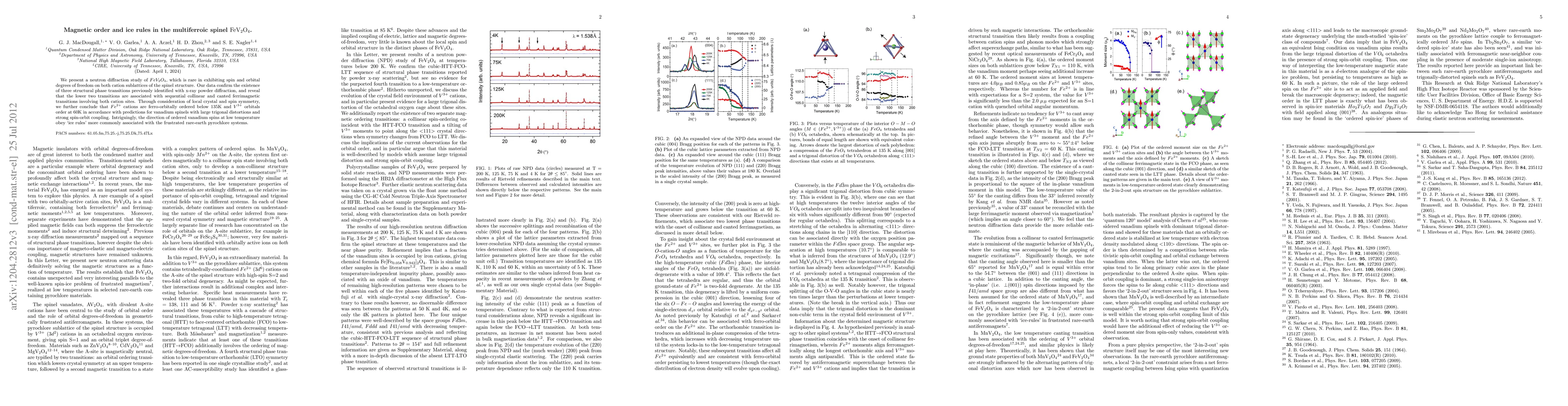 We present a neutron diffraction study of FeV2O4, which is rare in exhibiting spin and orbital degrees of freedom on both cation sublattices of the spinel structure. Our data confirm the existence of three structural phase transitions previously identified with x-ray powder diffraction, and reveal that the lower two transitions are associated with sequential collinear and canted ferrimagnetic transitions involving both cation sites. Through consideration of local crystal and spin symmetry, we further conclude that Fe2+ cations are ferro-orbitally ordered below 135K and V3+ orbitals order at 60K in accordance with predictions for vanadium spinels with large trigonal distortions and strong spin-orbit coupling. Intriguingly, the direction of ordered vanadium spins at low temperatures obey `ice rules' more commonly associated with the frustrated rare-earth pyrochlore systems.