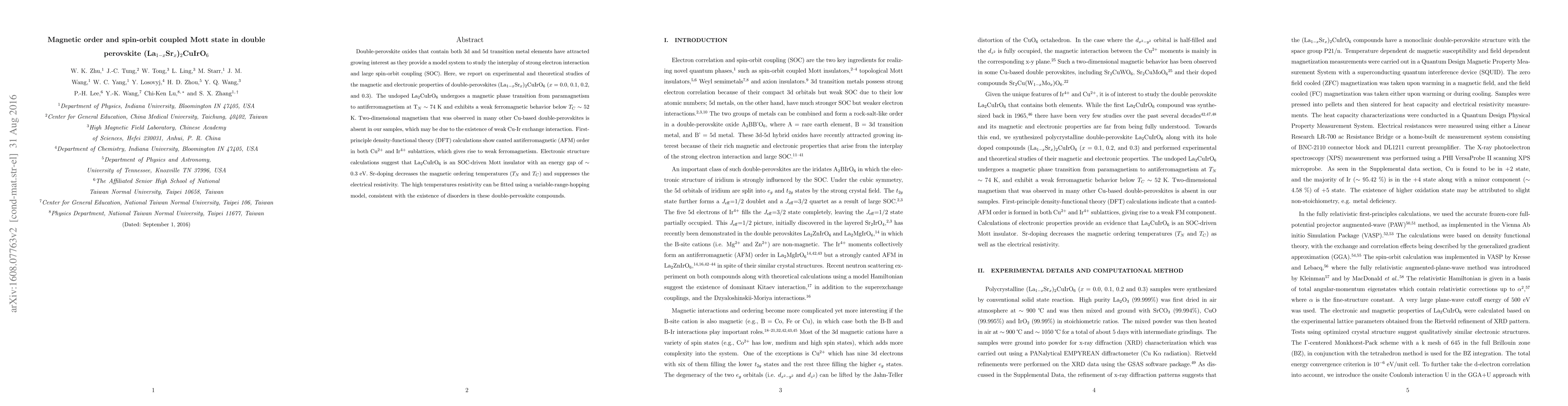 Double-perovskite oxides that contain both 3d and 5d transition metal elements have attracted growing interest as they provide a model system to study the interplay of strong electron interaction and large spin-orbit coupling (SOC). Here, we report on experimental and theoretical studies of the magnetic and electronic properties of double-perovskites (La$_{1-x}$Sr$_x$)$_2$CuIrO$_6$ ($x$ = 0.0, 0.1, 0.2, and 0.3). The undoped La$_2$CuIrO$_6$ undergoes a magnetic phase transition from paramagnetism to antiferromagnetism at T$_N$ $\sim$ 74 K and exhibits a weak ferromagnetic behavior below $T_C$ $\sim$ 52 K. Two-dimensional magnetism that was observed in many other Cu-based double-perovskites is absent in our samples, which may be due to the existence of weak Cu-Ir exchange interaction. First-principle density-functional theory (DFT) calculations show canted antiferromagnetic (AFM) order in both Cu$^{2+}$ and Ir$^{4+}$ sublattices, which gives rise to weak ferromagnetism. Electronic structure calculations suggest that La$_2$CuIrO$_6$ is an SOC-driven Mott insulator with an energy gap of $\sim$ 0.3 eV. Sr-doping decreases the magnetic ordering temperatures ($T_N$ and $T_C$) and suppresses the electrical resistivity. The high temperatures resistivity can be fitted using a variable-range-hopping model, consistent with the existence of disorders in these double-pervoskite compounds.
