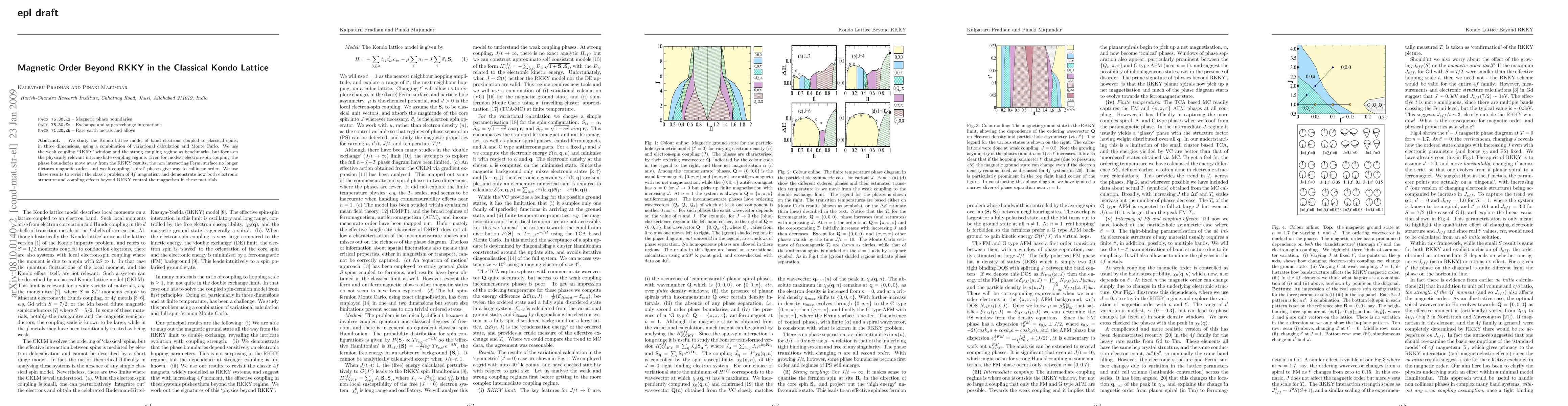 This paper investigates the Kondo lattice model in three dimensions, focusing on intermediate electron-spin coupling regimes beyond the RKKY interaction. It finds that magnetic order deviates from RKKY predictions, leading to collinear order instead of spiral phases, and highlights the influence of electronic structure and coupling effects on 4f magnetism.