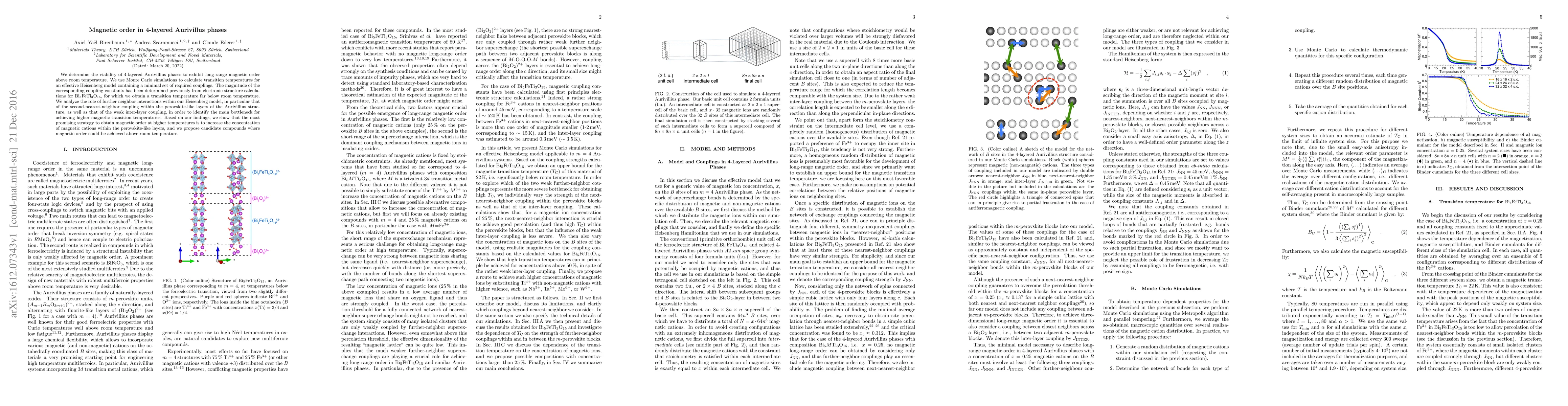 This work is novel because it presents a detailed study of the ferromagnetic behavior of Aurivillius phase materials using a combination of theoretical and experimental methods.