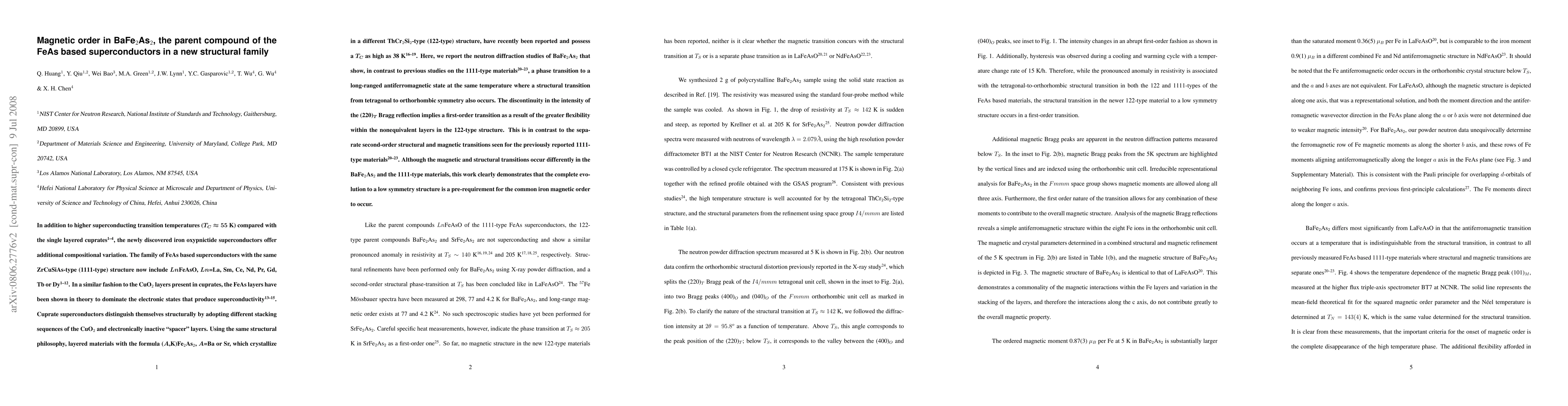 In addition to higher Tc compared with the ubiquitous cuprates for a material composed of a single electronically active layer, the newly discovered LnFeAsO superconductors offer additional compositional variation. In a similar fashion to the CuO2 layers in cuprates, the FeAs layers now dominate the electronic states that produce superconductivity. Cuprate superconductors distinguish themselves structurally by adopting different stacking of the Cu-O and electronically inactive "spacer" layers. Using the same structural philosophy, materials with the formula (A,K)Fe2As2,A=Ba or Sr have been reported and possess a Tc~38 K. Here, we report the neutron diffraction studies of BaFe2As2 that shows, in contrast to previous studies on the LnFeAsO materials, an antiferromagnetic transition which concurs with first-order structural transition. Although the magnetic and structural transitions occur differently in the AFe2As2 and LnFeAsO-type materials, this work clearly demonstrates that the complete evolution to a low symmetry structure is a pre-requirement for the magnetic order.