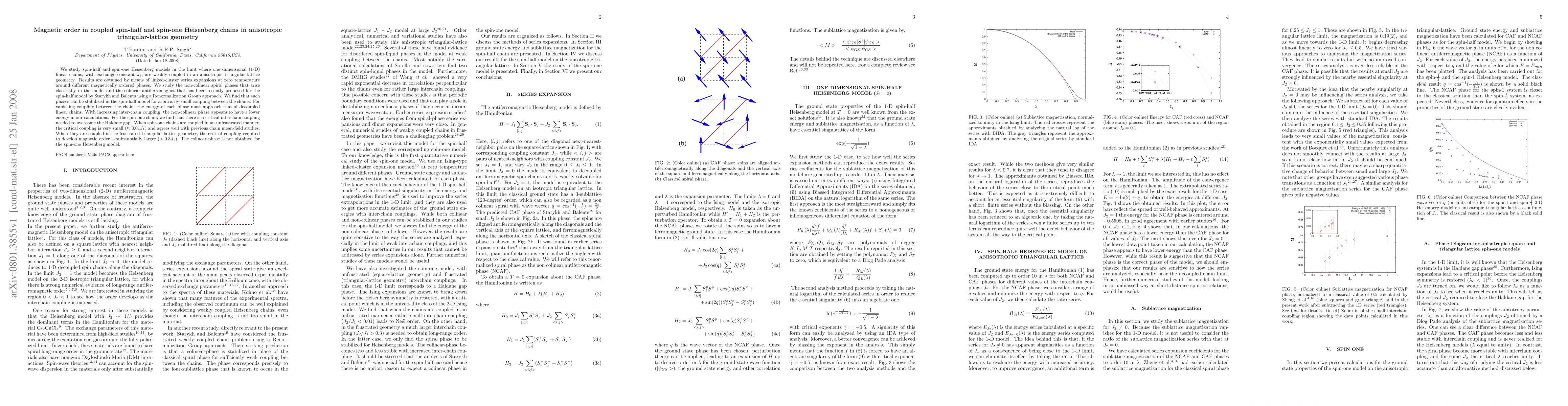 We study spin-half and spin-one Heisenberg models in the limit where one dimensional (1-D) linear chains, with exchange constant J1, are weakly coupled in an anisotropic triangular lattice geometry. Results are obtained by means of linked-cluster series expansions at zero temperature around different magnetically ordered phases. We study the non-colinear spiral phases that arise classically in the model and the colinear antiferromagnet that has been recently proposed for the spin-half model by Starykh and Balents using a Renormalization Group approach. We find that such phases can be stabilized in the spin-half model for arbitrarily small coupling between the chains. For vanishing coupling between the chains the energy of each phase must approach that of decoupled linear chains. With increasing inter-chain coupling, the non-colinear phase appears to have a lower energy in our calculations. For the spin-one chain, we find that there is a critical interchain coupling needed to overcome the Haldane gap. When spin-one chains are coupled in an unfrustrated manner, the critical coupling is very small (~0.01J1) and agrees well with previous chain mean-field studies. When they are coupled in the frustrated triangular-lattice geometry, the critical coupling required to develop magnetic order is substantially larger (> 0.3J1). The colinear phase is not obtained for the spin-one Heisenberg model.