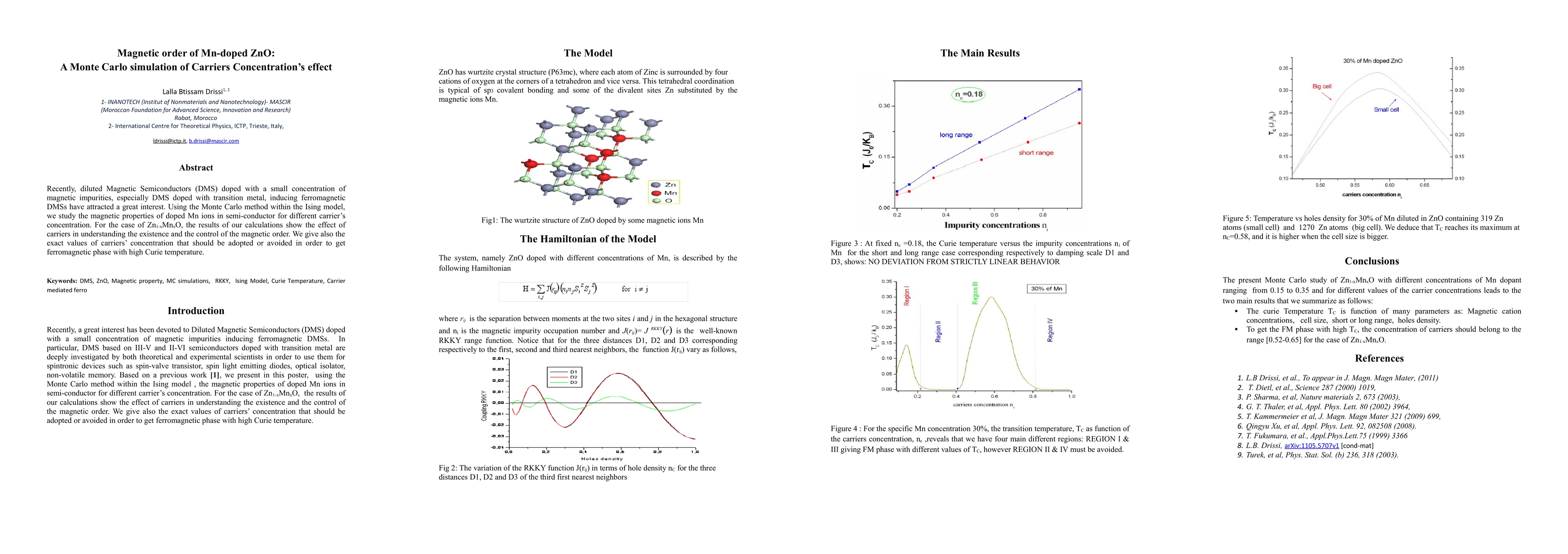 Recently, diluted Magnetic Semiconductors (DMS) doped with a small concentration of magnetic impurities, especially DMS doped with transition metal, inducing ferromagnetic DMSs have attracted a great interest. Using the Monte Carlo method within the Ising model,we study the magnetic properties of doped Mn ions in semi-conductor for different carrier's concentration. For the case of Zn1-xMnxO, the results of our calculations show the effect of carriers in understanding the existence and the control of the magnetic order. We give also the exact values of carriers' concentration that should be adopted or avoided in order to get ferromagnetic phase with high Curie temperature.