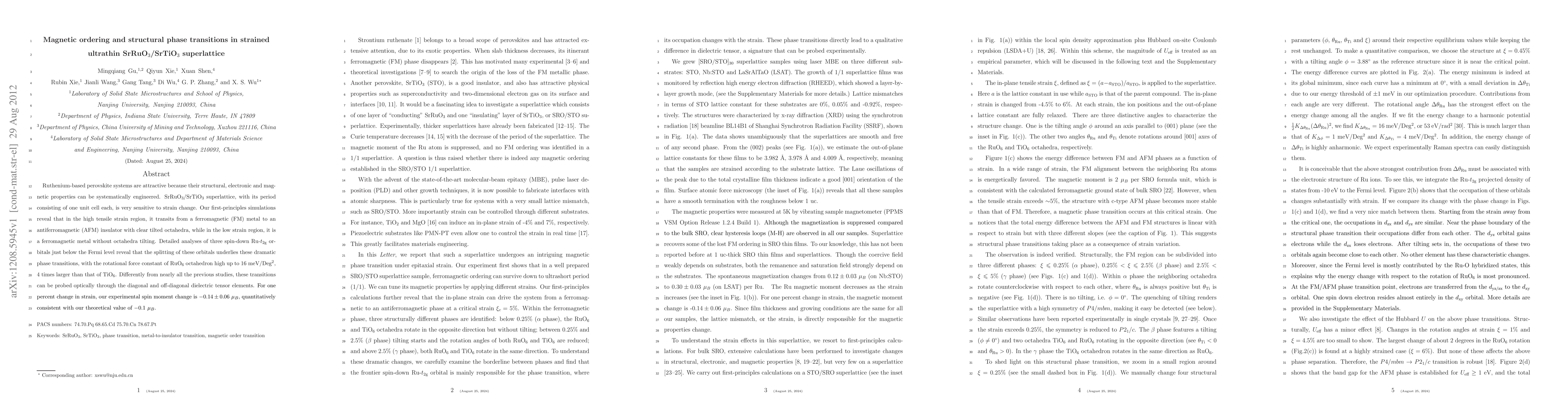 The research uses first-principles simulations to reveal that strained ultrathin SrRuO3/SrTiO3 superlattice undergoes transitions from ferromagnetic metal to antiferromagnetic insulator with octahedra tilting under high tensile strain, while remaining a ferromagnetic metal without tilting under low strain. These transitions, driven by splitting of specific Ru-t2g orbitals, can be optically probed, with experimental findings aligning with theoretical predictions.