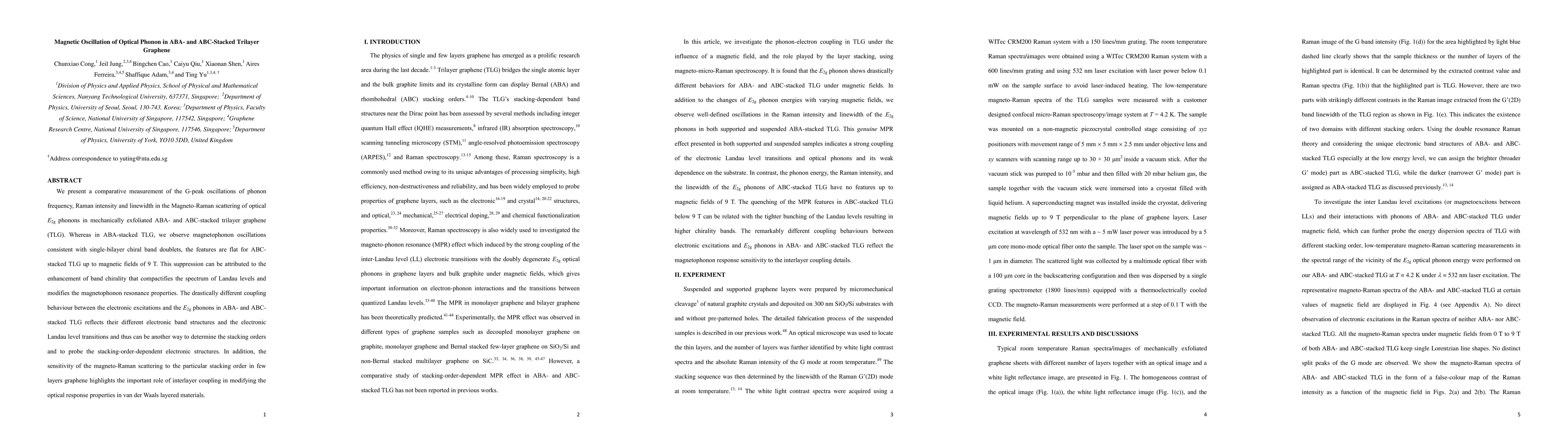 This research compares magneto-Raman scattering in ABA- and ABC-stacked trilayer graphene, revealing distinct oscillations in phonon frequency and intensity for ABA stacking due to chiral band doublets, while ABC stacking exhibits flat features up to 9 T, highlighting the impact of interlayer coupling on electronic structures and optical properties.