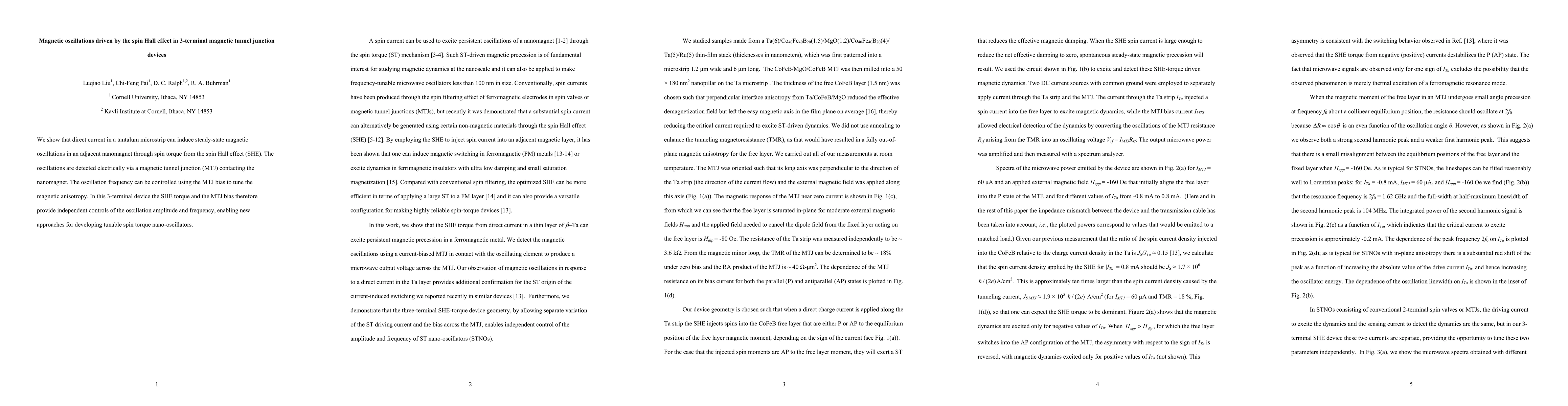 Researchers created a device that uses spin torque from the spin Hall effect to induce magnetic oscillations in an adjacent nanomagnet. This allows for new approaches to developing tunable spin torque nano-oscillators with independent controls over frequency and amplitude.