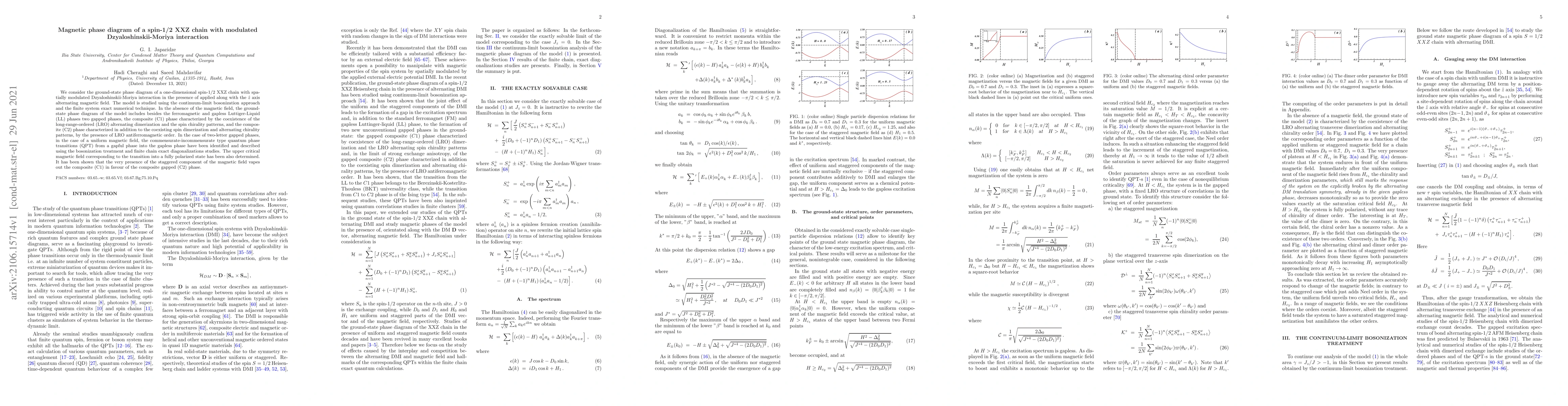 This paper investigates the ground-state phase diagram of a spin-1/2 XXZ chain with modulated Dzyaloshinskii-Moriya interaction and applied magnetic field. It identifies various phases including ferromagnetic, Luttiger-Liquid, and composite phases, and describes quantum phase transitions under magnetic fields using bosonization and numerical techniques.