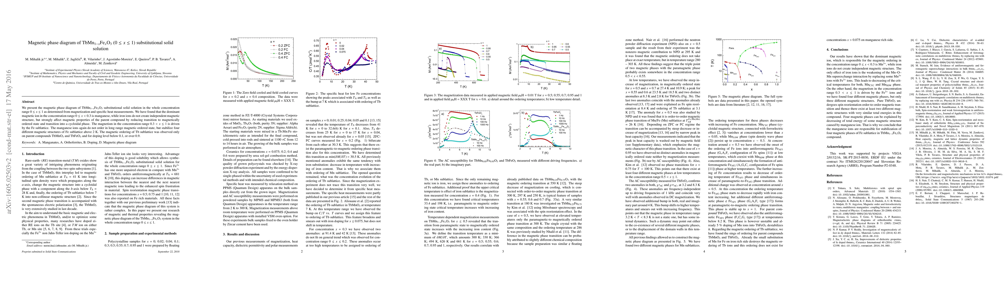 The study investigates the magnetic phase diagram of TbMn1-xFexO3 solid solution, revealing that manganese dominates magnetism in 0 <= x < 0.3 range, while iron takes over in 0.3 < x <= 1 range.