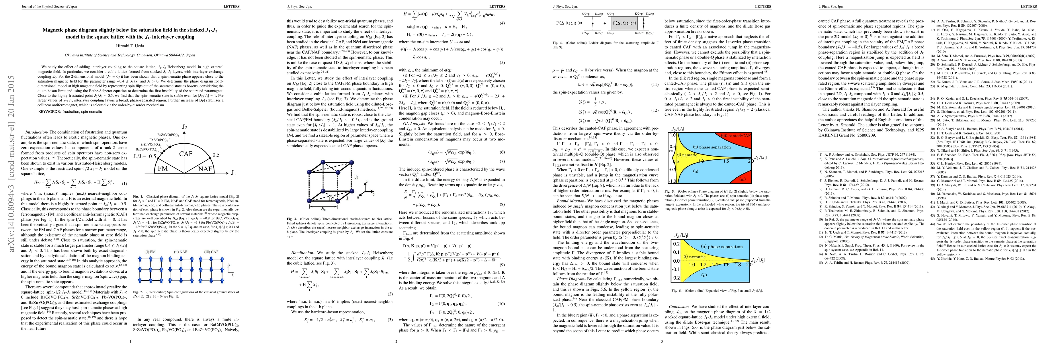 This paper investigates the magnetic phase diagram of a stacked $J_1$-$J_2$ model on a square lattice with interlayer coupling $J_{\text{C}}$ under high magnetic fields. The study finds that a spin-nematic phase remains stable near the saturation field even for significant interlayer coupling, while larger $J_2/J_1$ ratios favor phase separation, and high $J_{\text{C}}$ stabilizes a collinear antiferromagnet.