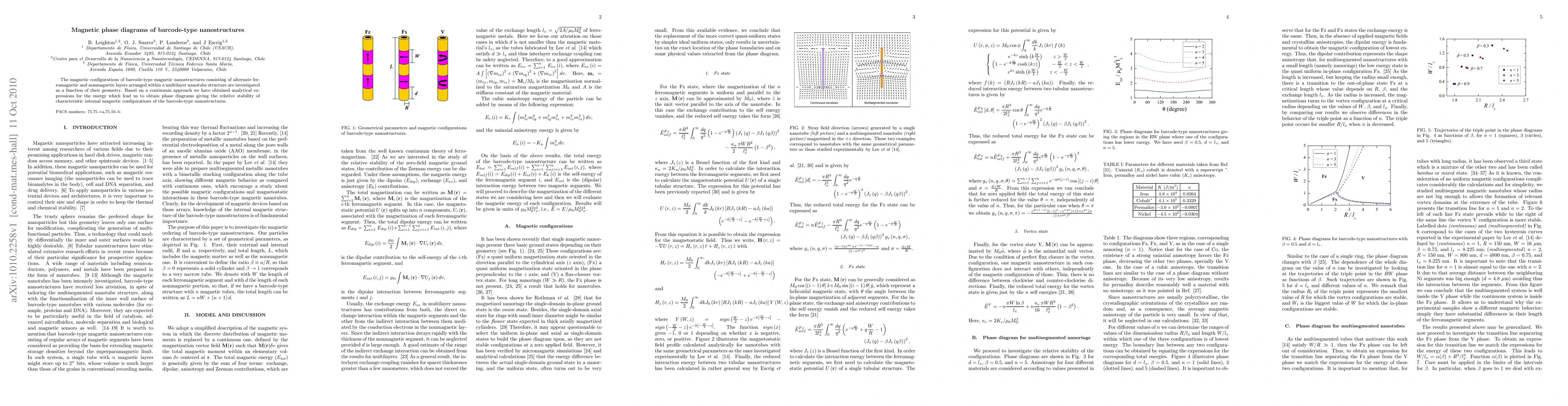 This research derives analytical expressions for magnetic energy in barcode-type nanostructures, composed of alternating ferromagnetic and nonmagnetic layers within a nanotube, using a continuum approach. The findings present phase diagrams illustrating the stability of various internal magnetic configurations based on the structures' geometry.