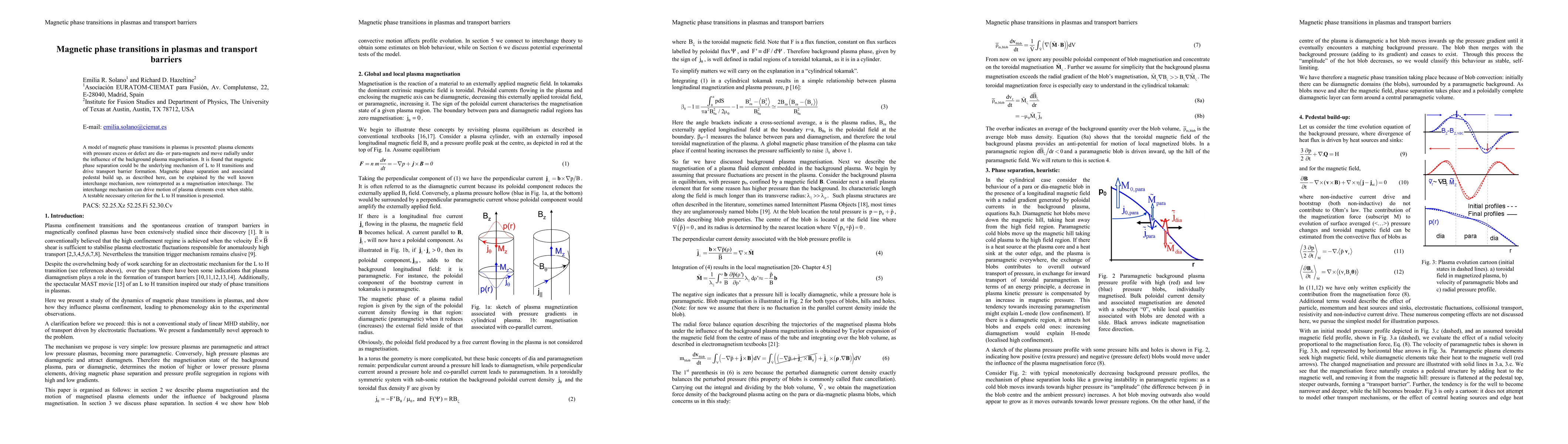 This paper proposes a model explaining magnetic phase transitions in plasmas, suggesting that magnetic phase separation drives transport barrier formation and L to H transitions in plasmas. The model reinterprets the interchange mechanism as a magnetisation interchange, offering a testable criterion for these transitions.