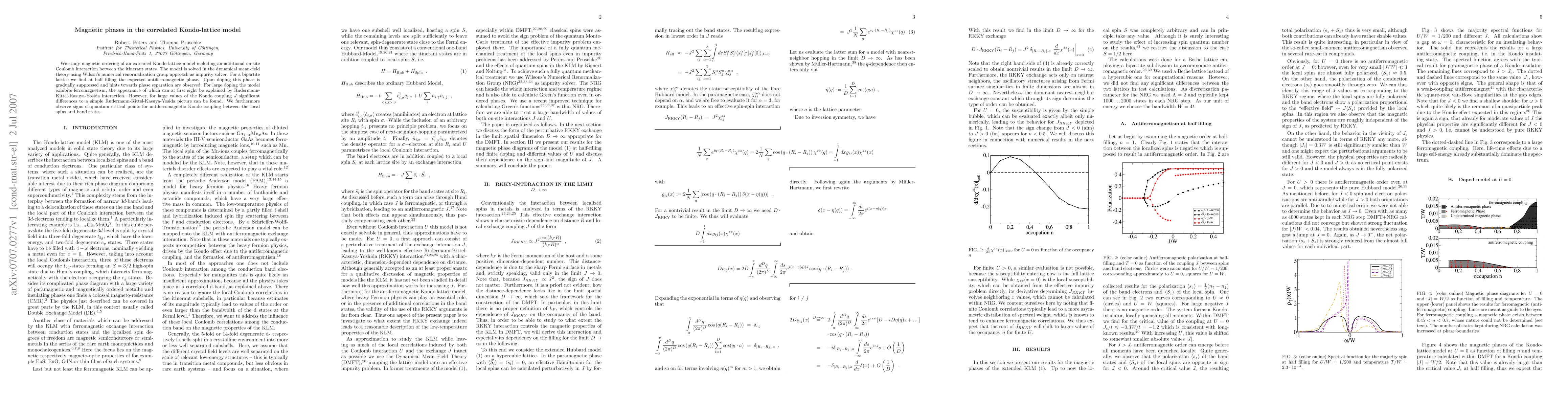 The paper presents a detailed analysis of magnetic phases in the correlated Kondo-lattice model using advanced computational techniques, DMFT and NRG, providing insights into the interplay between itinerant electrons and localized spins.