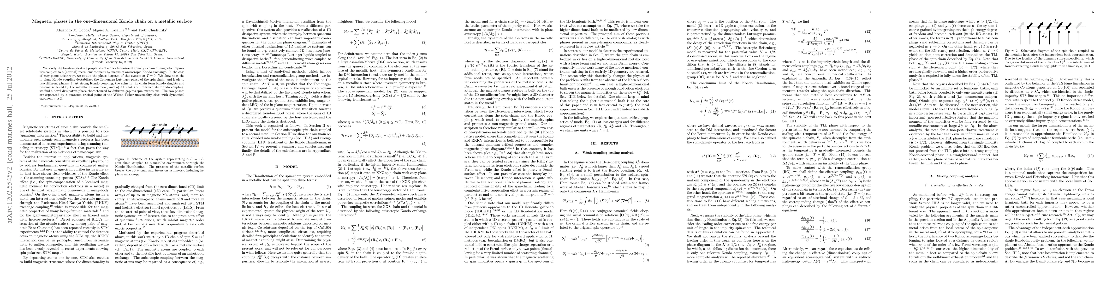 This paper investigates the magnetic phases in a one-dimensional spin-1/2 Kondo chain on a metallic surface, revealing two distinct phases: a Kondo singlet phase at strong coupling and a dissipative phase with diffusive gapless spin excitations at weak to intermediate coupling, separated by a quantum critical point.