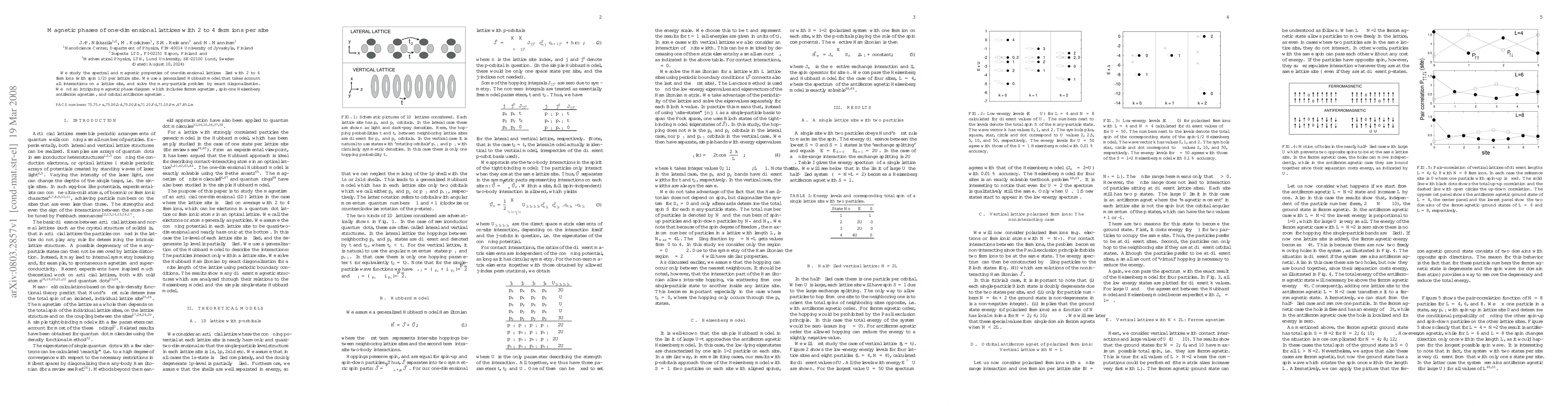 We study the spectral and magnetic properties of one-dimensional lattices filled with 2 to 4 fermions (with spin 1/2) per lattice site. We use a generalized Hubbard model that takes account all interactions on a lattice site, and solve the many-particle problem by exact diagonalization. We find an intriguing magnetic phase diagram which includes ferromagnetism, spin-one Heisenberg antiferromagnetism, and orbital antiferromagnetism.