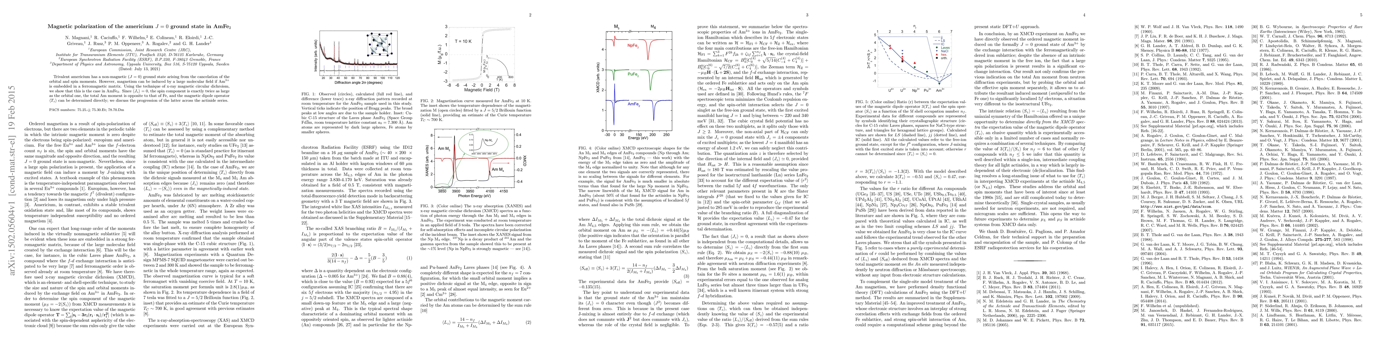 Trivalent americium has a non-magnetic ($J$ = 0) ground state arising from the cancelation of the orbital and spin moments. However, magnetism can be induced by a large molecular field if Am$^{3+}$ is embedded in a ferromagnetic matrix. Using the technique of x-ray magnetic circular dichroism, we show that this is the case in AmFe$_2$. Since $\langle J_z \rangle$ = 0, the spin component is exactly twice as large as the orbital one, the total Am moment is opposite to that of Fe, and the magnetic dipole operator $\langle T_{z} \rangle$ can be determined directly; we discuss the progression of the latter across the actinide series.