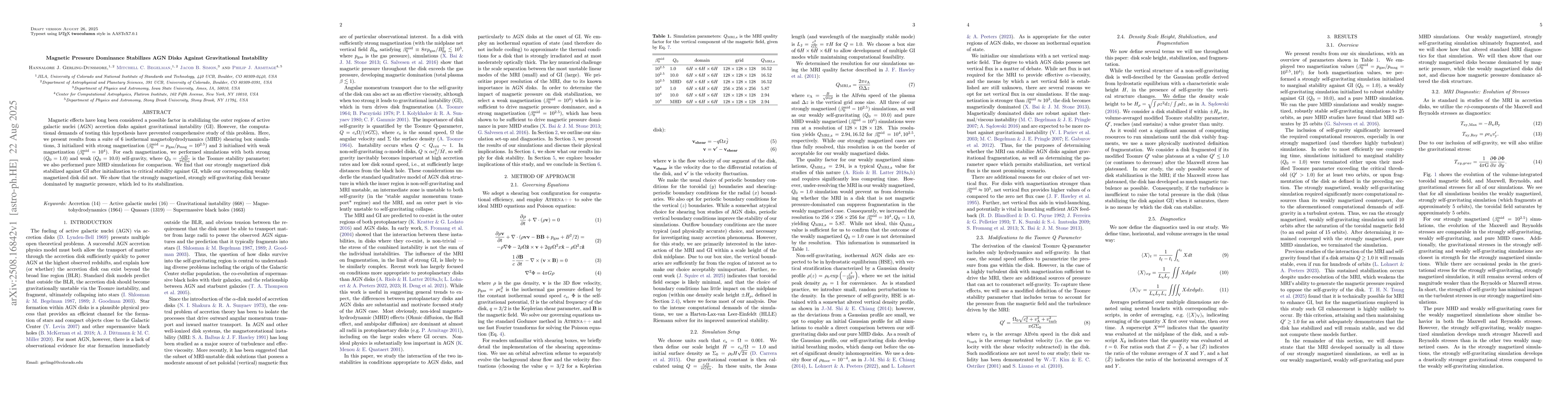 Magnetic effects have long been considered a possible factor in stabilizing the outer regions of active galactic nuclei (AGN) accretion disks against gravitational instability (GI). However, the computational demands of testing this hypothesis have prevented comprehensive study of this problem. Here, we present results from a suite of 6 isothermal magnetohydrodynamics (MHD) shearing box simulations, 3 initialized with strong magnetization ($\beta^{\rm{mid}}_{0} = p_{\rm{gas}} / p_{\rm{mag}} = 10^{2.5}$) and 3 initialized with weak magnetization ($\beta^{\rm mid}_{0} = 10^{4}$). For each magnetization, we performed simulations with both strong ($Q_{0} = 1.0$) and weak ($Q_{0} = 10.0$) self-gravity, where $Q_{0} = \frac{c_{\rm{s}}\Omega}{\pi G \Sigma_{0}}$ is the Toomre stability parameter; we also performed pure MHD simulations for comparison. We find that our strongly magnetized disk stabilized against GI after initialization to critical stability against GI, while our corresponding weakly magnetized disk did not. We show that the strongly magnetized, strongly self-gravitating disk became dominated by magnetic pressure, which led to its stabilization.